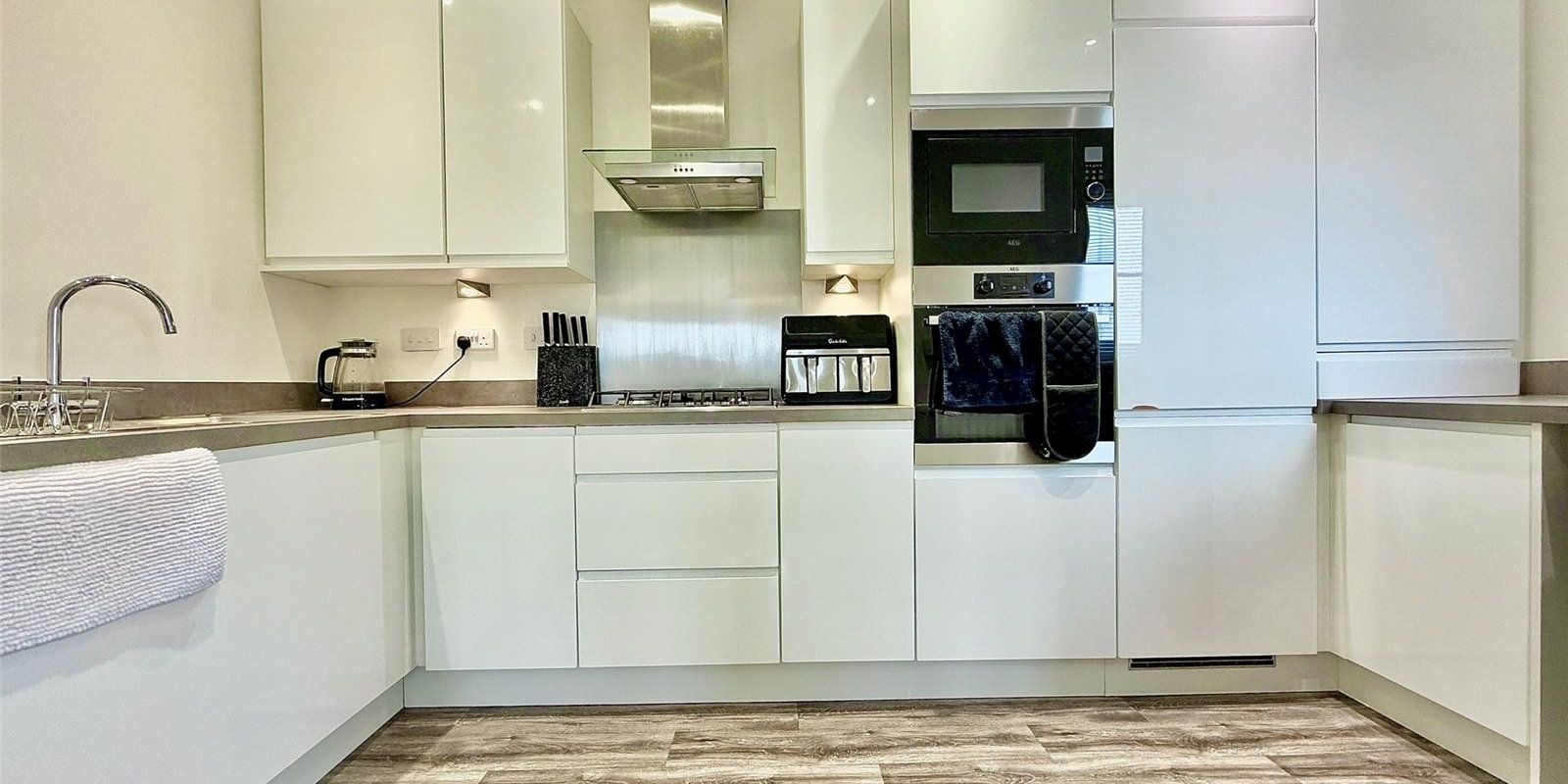 The modern fitted kitchen comes complete with a range of integrated appliances, while the master bedroom benefits from an en-suite shower room. A well-proportioned second double bedroom with fitted wardrobes and a stylish family bathroom complete the internal accommodation.