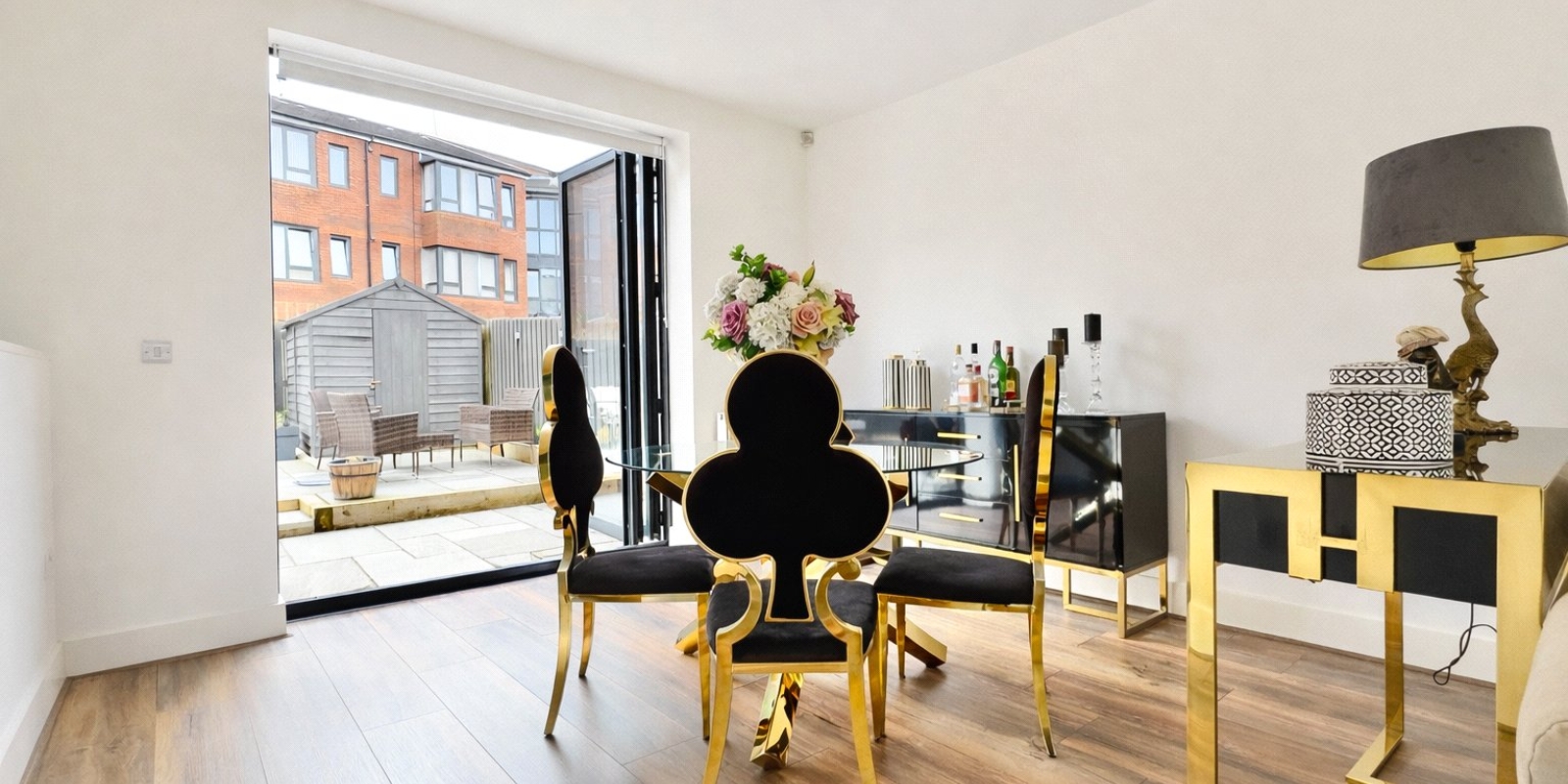 Upon entering, you are welcomed by an inviting entrance hallway with staircase rising to the first floor, a useful downstairs cloakroom and access through to the impressive open-plan living space. The bright and spacious living room features a striking floor-to-ceiling window to the front, flooding the room with natural light and creating a modern, airy feel. This flows seamlessly into the dining area and contemporary fitted kitchen, forming the true heart of the home. From here, stylish bi-folding doors open out onto the enclosed rear garden, providing the perfect setting for entertaining or relaxing during warmer months.