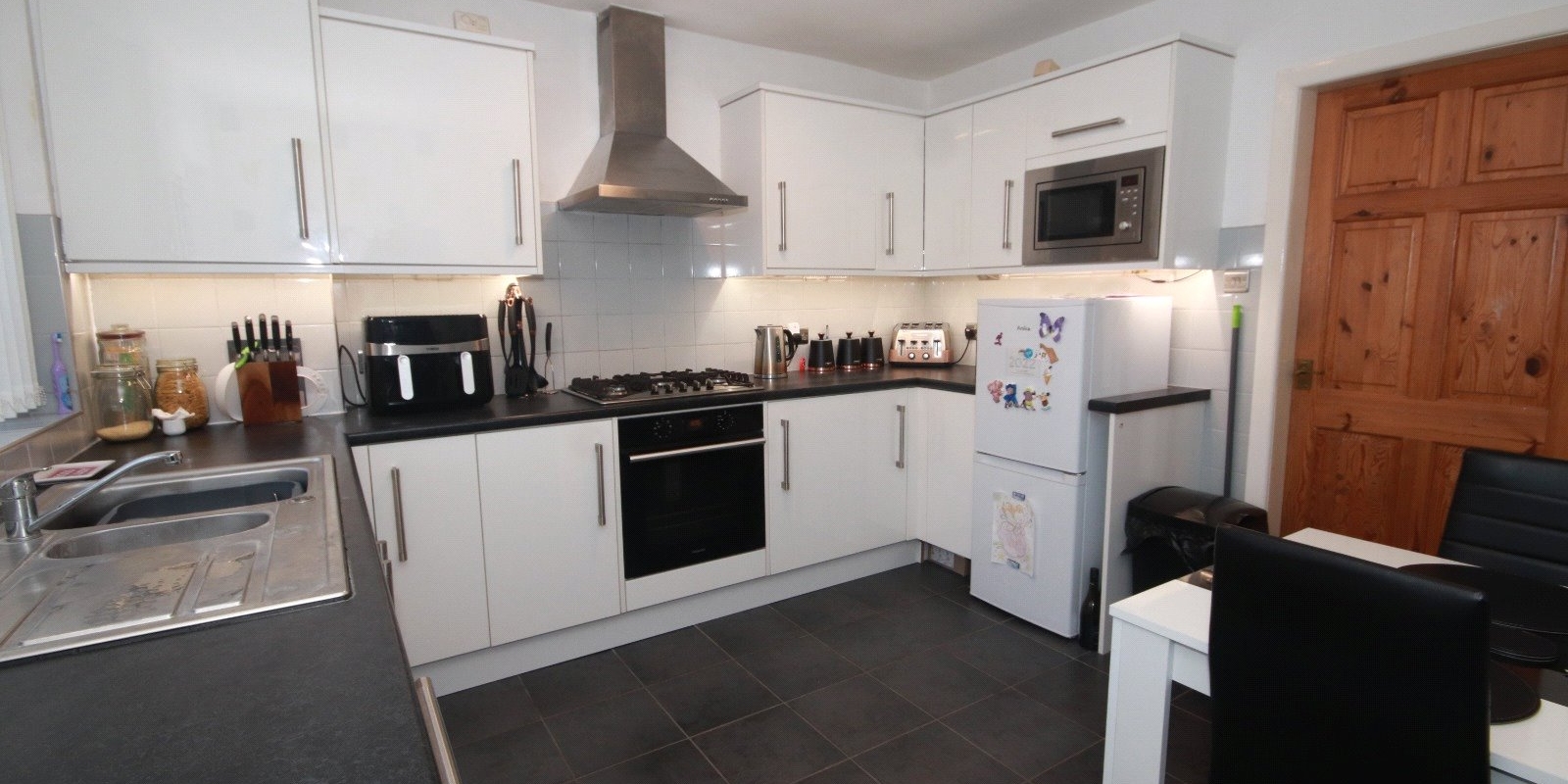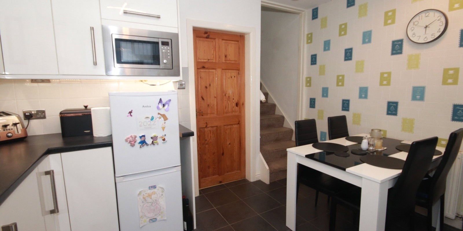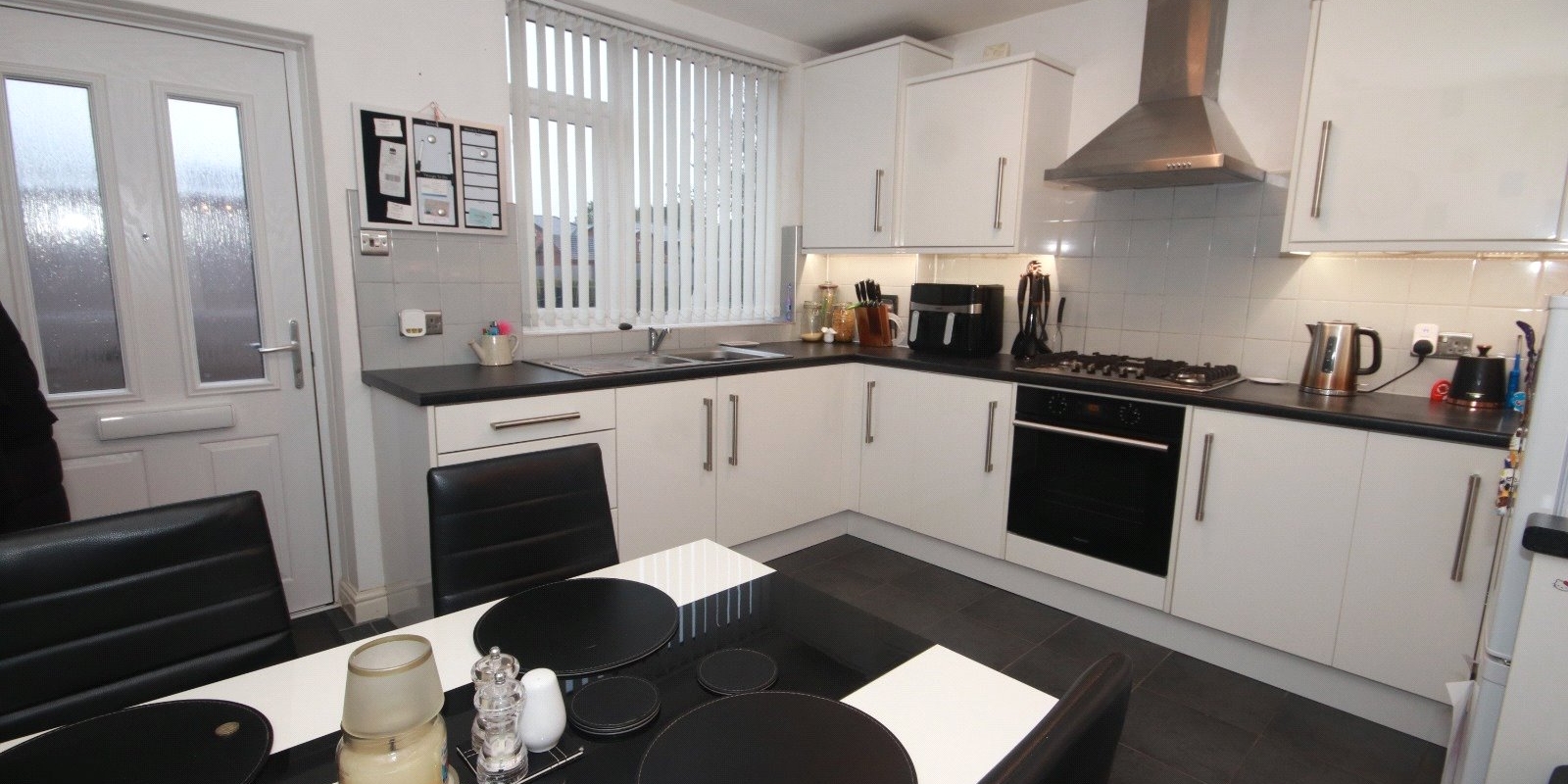 As you enter the property, the front door opens into a stylish, contemporary kitchen/diner, thoughtfully designed with modern fittings and ample space for family meals or entertaining. The rear of the house features a spacious lounge/dining room, perfect for relaxation or social gatherings, with direct access to the private rear garden, ideal for outdoor living.