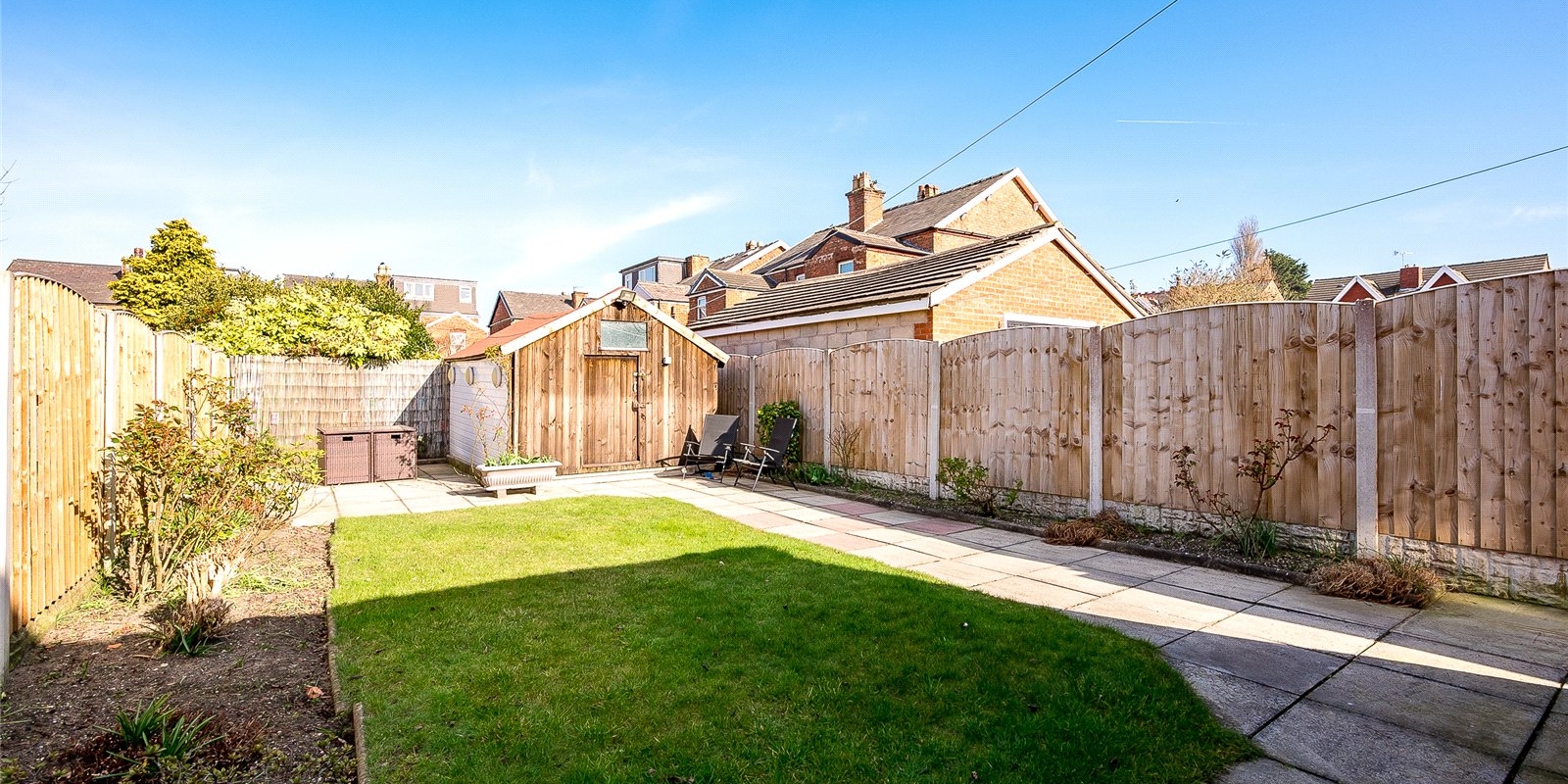 Set within established gardens to both the front and rear, the property offers off-road parking for several vehicles to the front, while the rear garden features a lawn, borders, and a patio area.