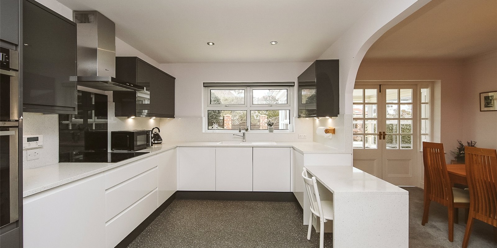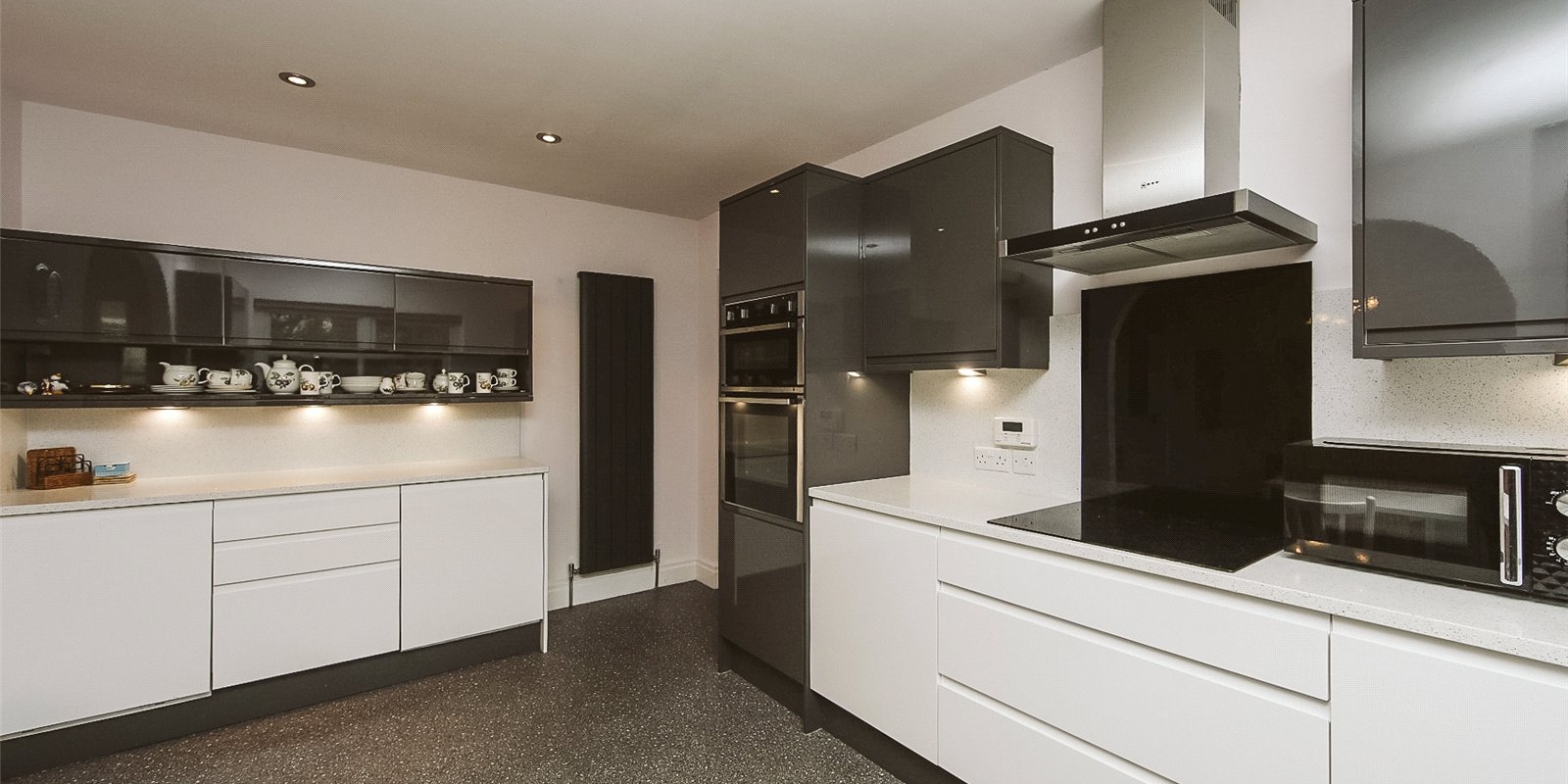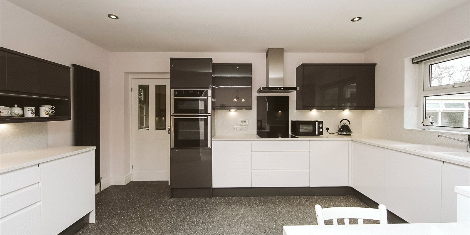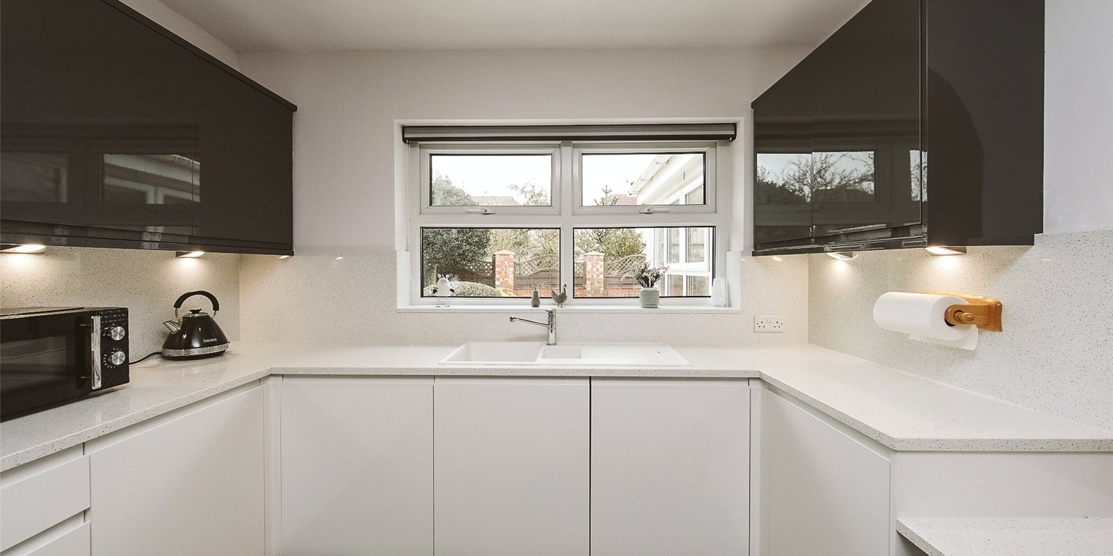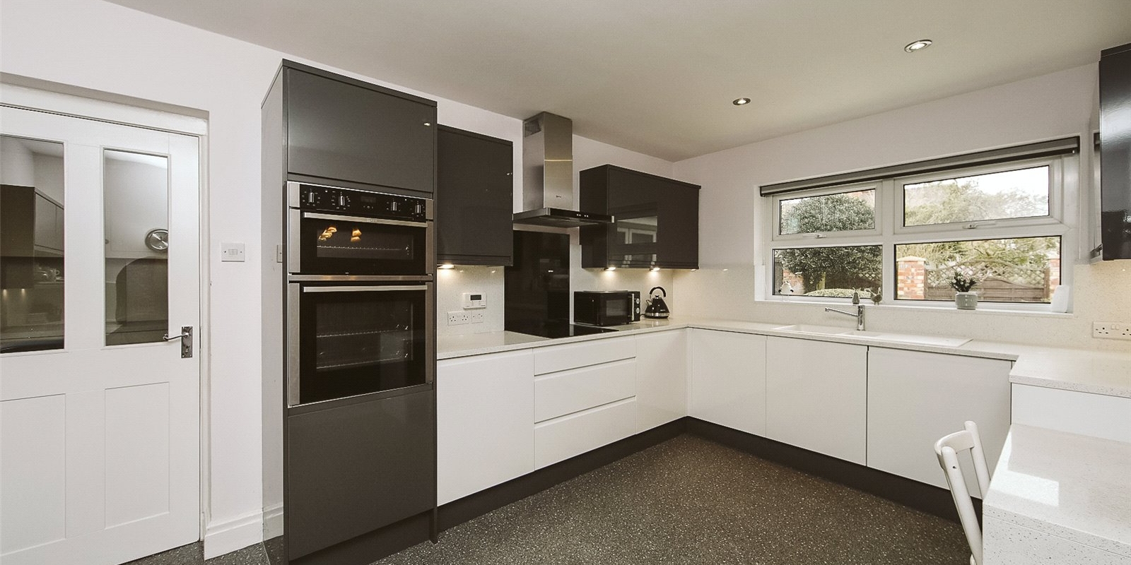 Outside, the low-maintenance rear garden is thoughtfully designed with high-quality porcelain flags and direct access to the garage, creating an elegant and practical outdoor space perfect for relaxing or entertaining.