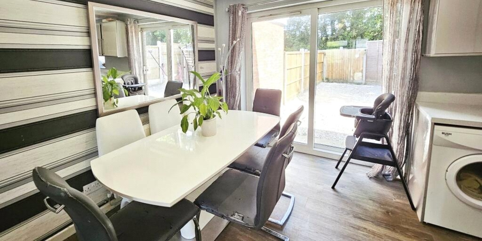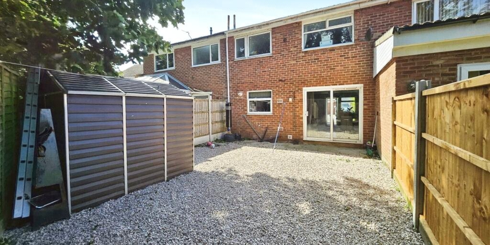 The rear garden is accessed through sliding patio doors and provides a private outdoor space perfect for enjoying the warmer months.