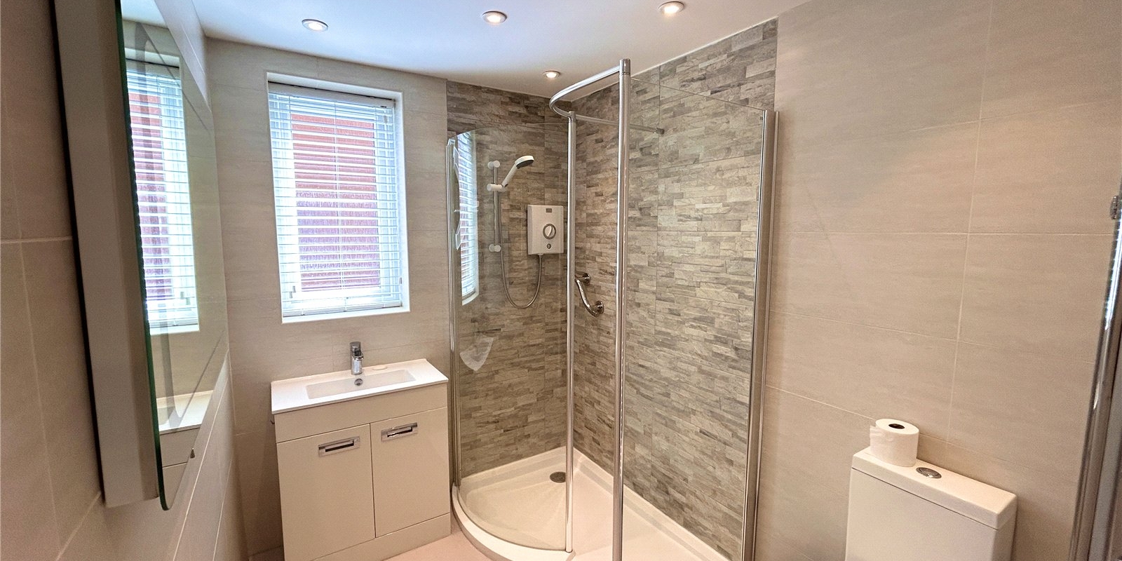 Both bedrooms are well-proportioned, providing flexibility for a guest room, study, or additional living space. The master bedroom enjoys a private aspect and benefits from built-in storage solutions. The shower room is beautifully presented and generously sized.