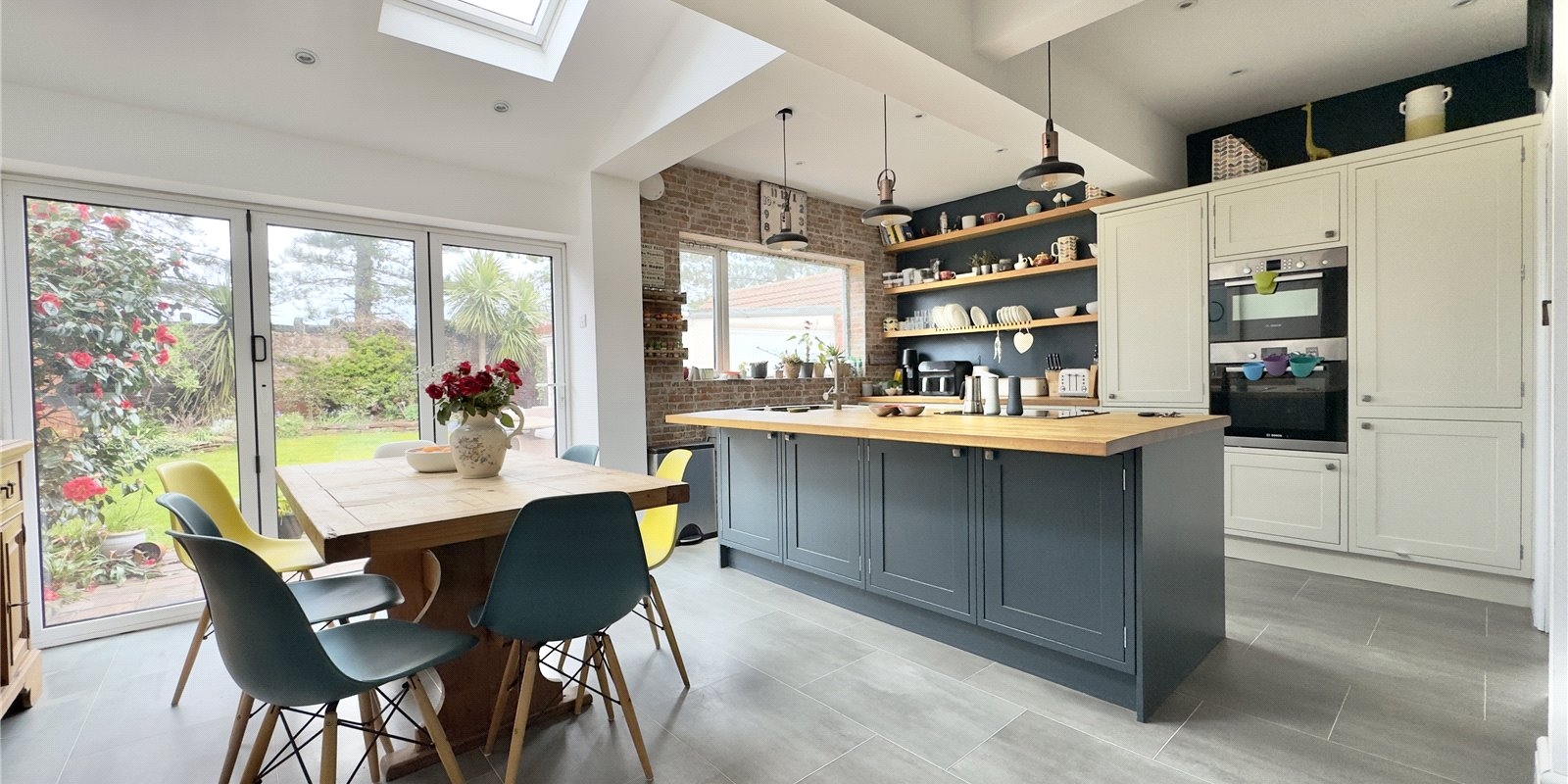 To the rear, the property has been thoughtfully extended to create a superb open-plan kitchen and dining area, forming the true heart of the home. Designed with both style and functionality in mind, the kitchen benefits from underfloor heating and an instant hot water tap, alongside ample storage and workspace. A separate utility room adds further convenience, keeping everyday tasks neatly tucked away. The dining area flows seamlessly out to the garden, making it perfect for entertaining and modern family living.