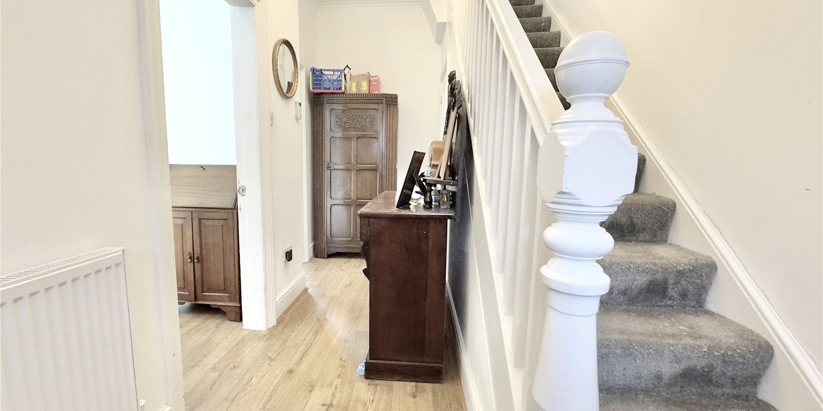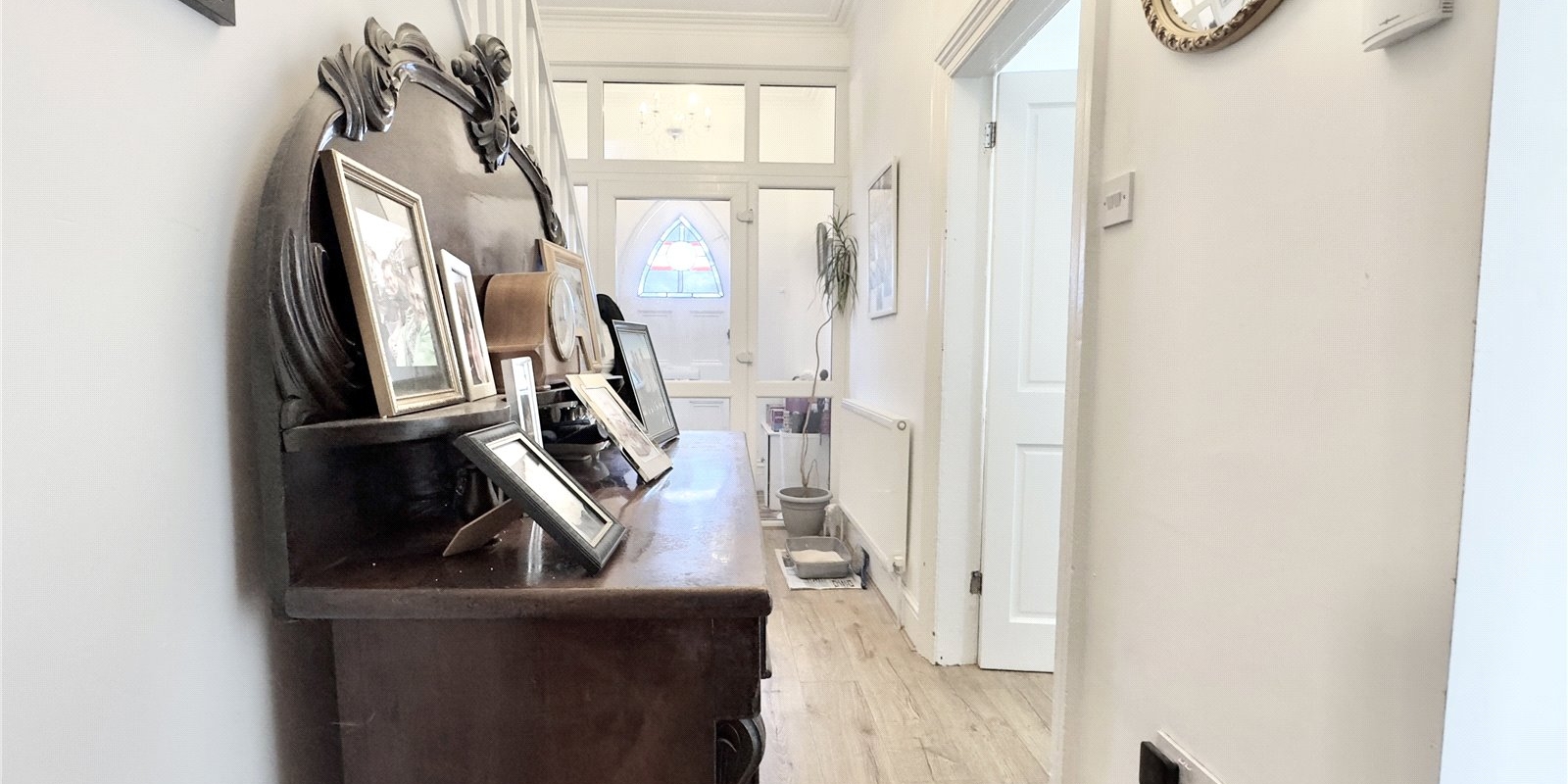 Enhancing its appeal, the property enjoys a sizable private enclosed rear garden, meticulously landscaped with a winding lawn, a paved patio area, and mature borders adorned with established trees, bushes, and shrubs. A garden storage shed and rear gate access further complement the outdoor space. Notably, neighbouring properties have capitalised on the rear entry to create off-road parking and garages, a possibility that could be explored here (*subject to approval).