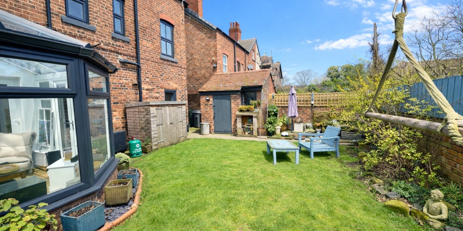 To the rear, the conservatory provides a peaceful retreat, filled with natural light and offering lovely views of the garden. This versatile space is ideal for relaxing, working from home, or enjoying year-round views of your outdoor surroundings.