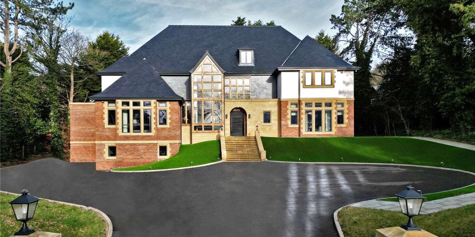 Sumptuous residence of vast proportions and meticulous attention to detail situated on a secluded plot in the heart of Caldy. With its striking architectural profile and innovative approach to detail and craftsmanship, the property spans over 12,000 square feet and comprises five bedrooms, five bathrooms, and a leisure complex. From the exterior, this contemporary home immediately captivates with its distinctive and clever combination of stone, render, and glass.