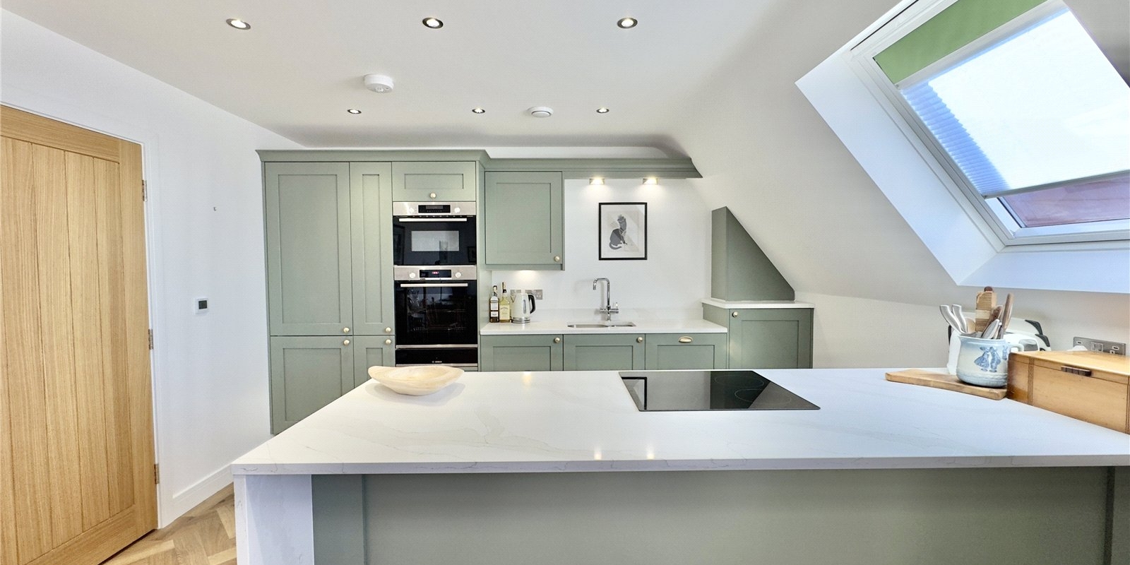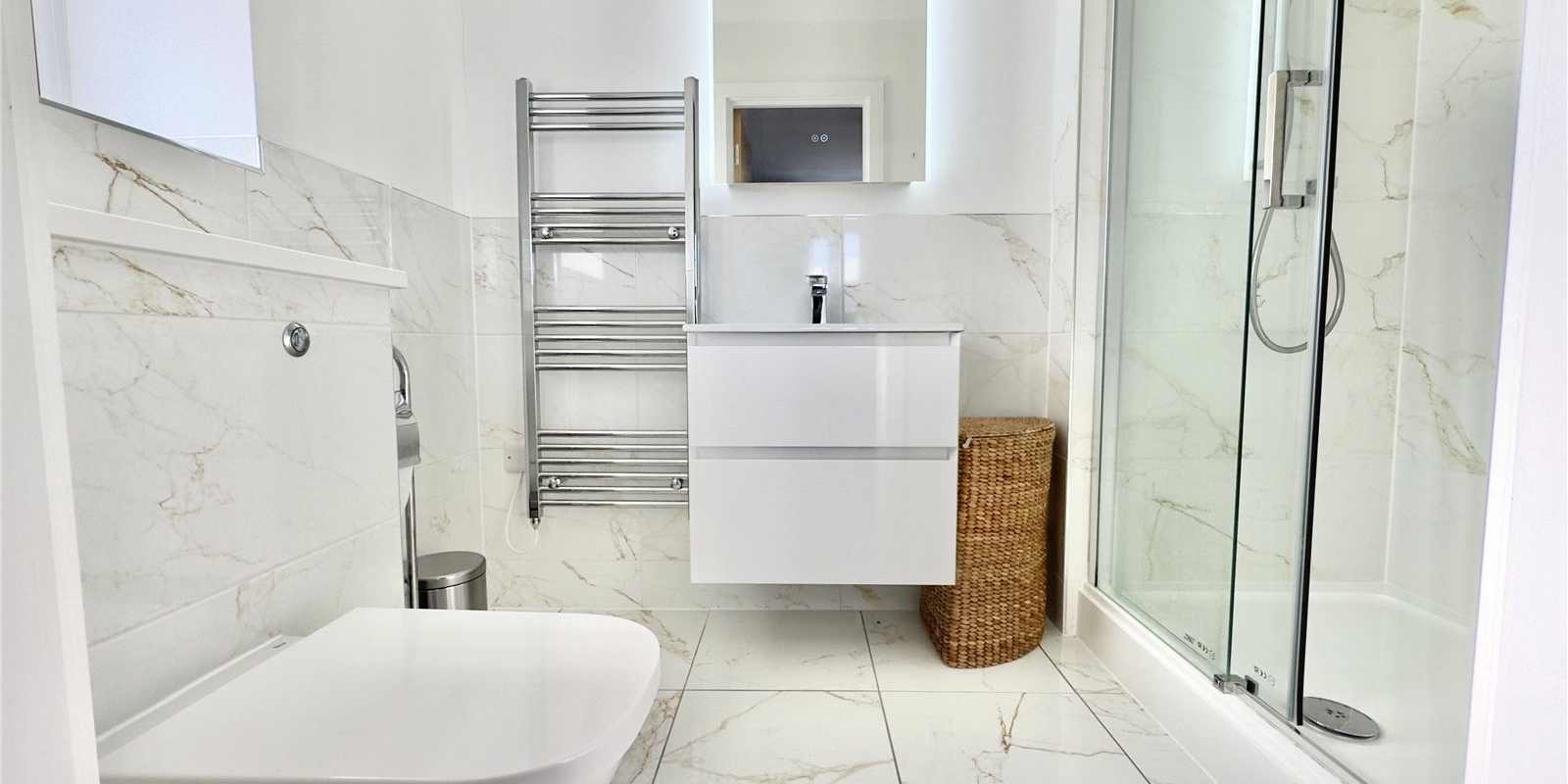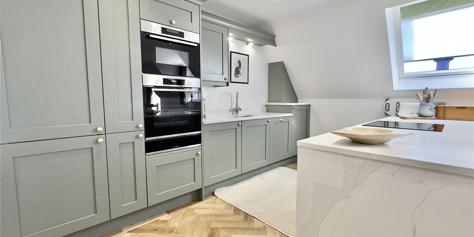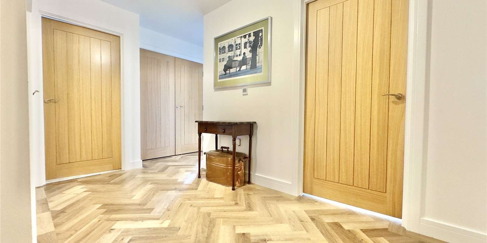 This elegant apartment features two generously sized bedrooms and has been thoughtfully designed with attention to every detail. The stylish kitchen is complete with quartz worktops, Bosch integrated appliances, and a boiling water tap, blending functionality with modern sophistication.