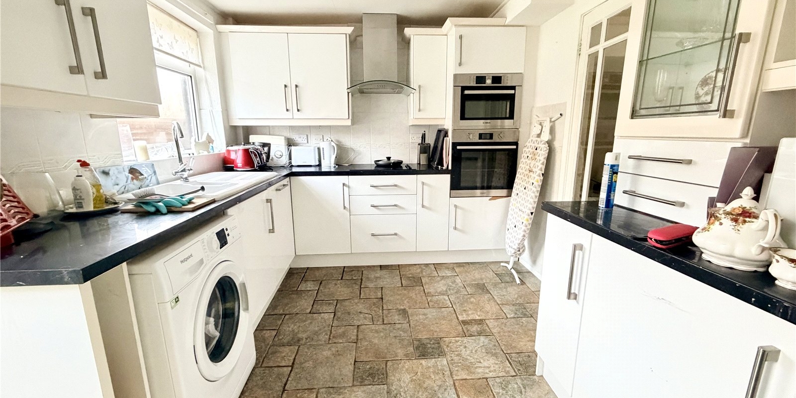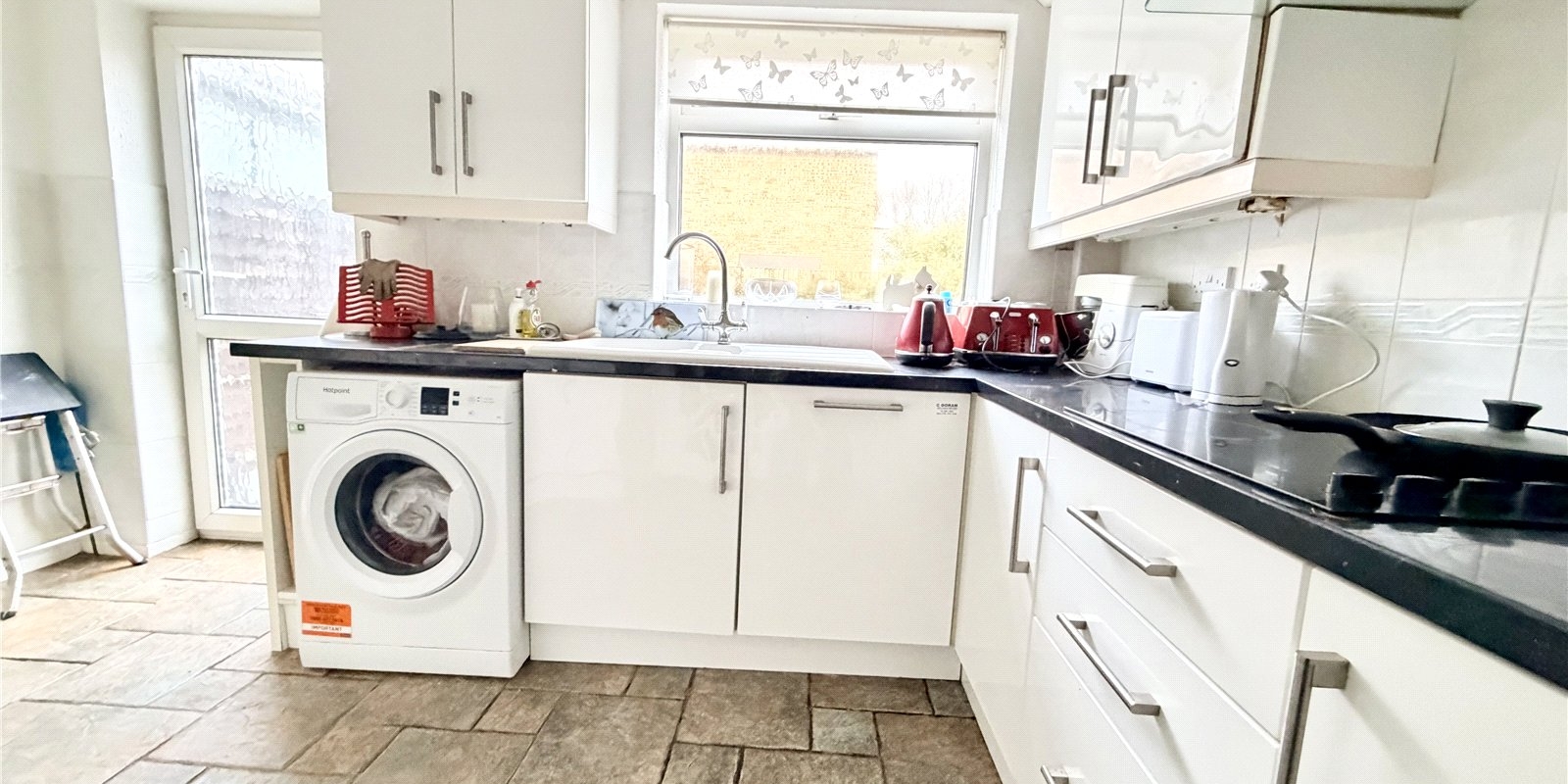The accommodation comprises a spacious lounge with plenty of natural light, providing an inviting space for everyday living and entertaining. The kitchen offers a practical layout with ample storage and workspace, ready for cosmetic updating to suit individual tastes. Upstairs, two well-proportioned bedrooms and a family bathroom complete the internal accommodation.