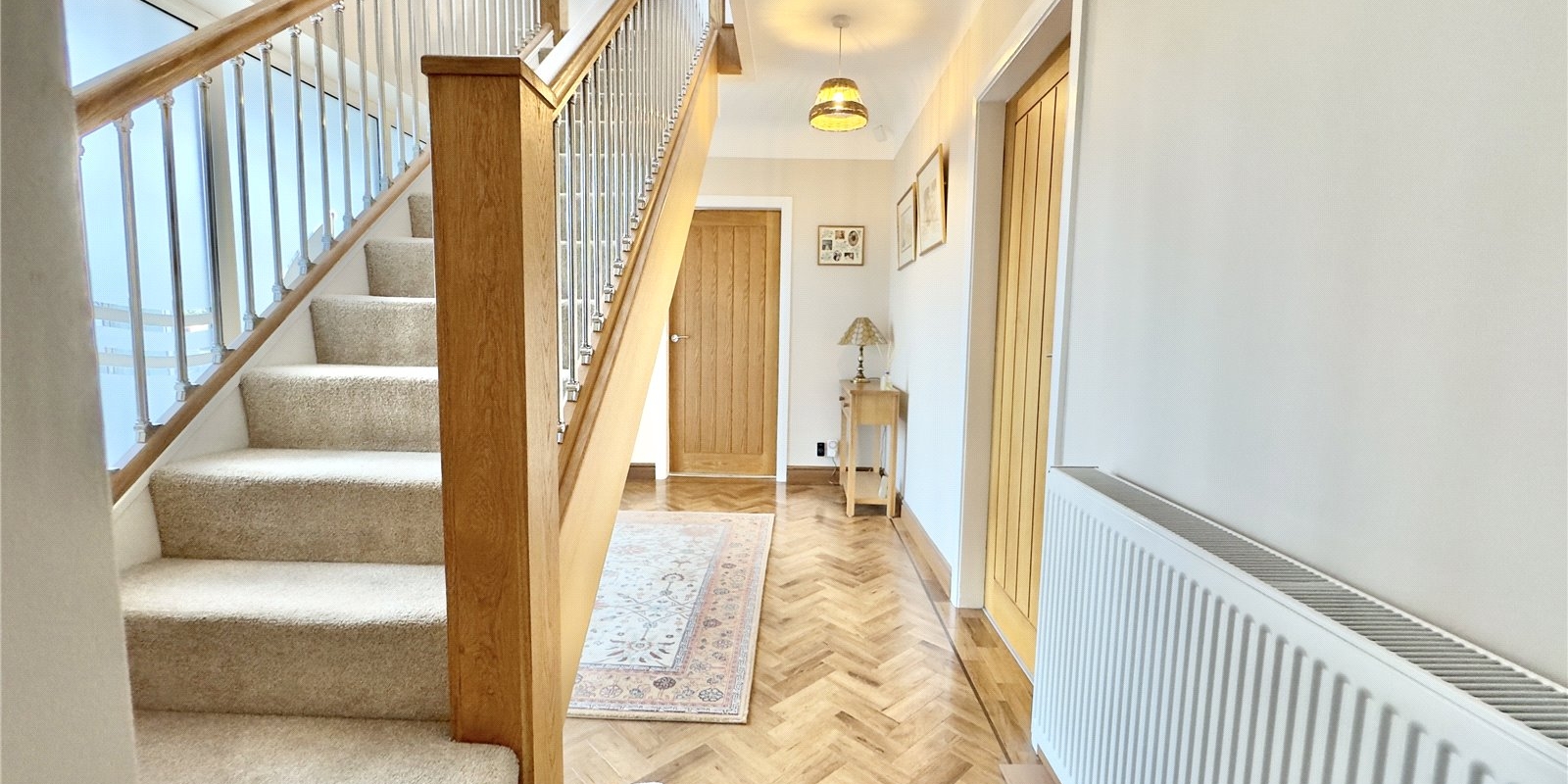 Upstairs, the landing gives access to three double bedrooms, including a master ensuite shower and W.C. The other two bedrooms are complemented by a large family bathroom.