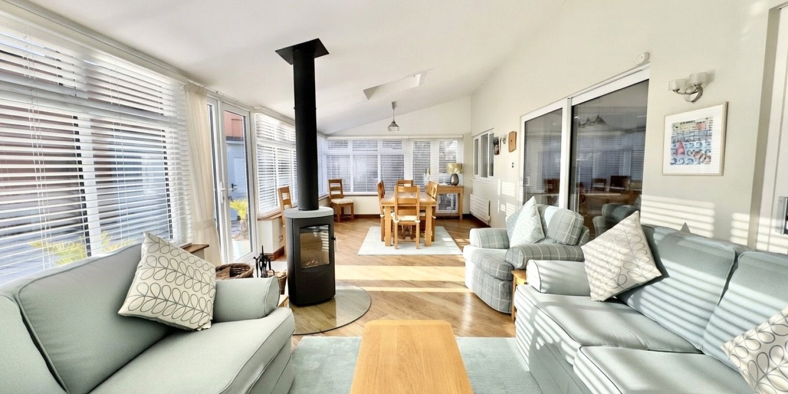 • Stunning conservatory extension, housing dining area and lounge with log burner