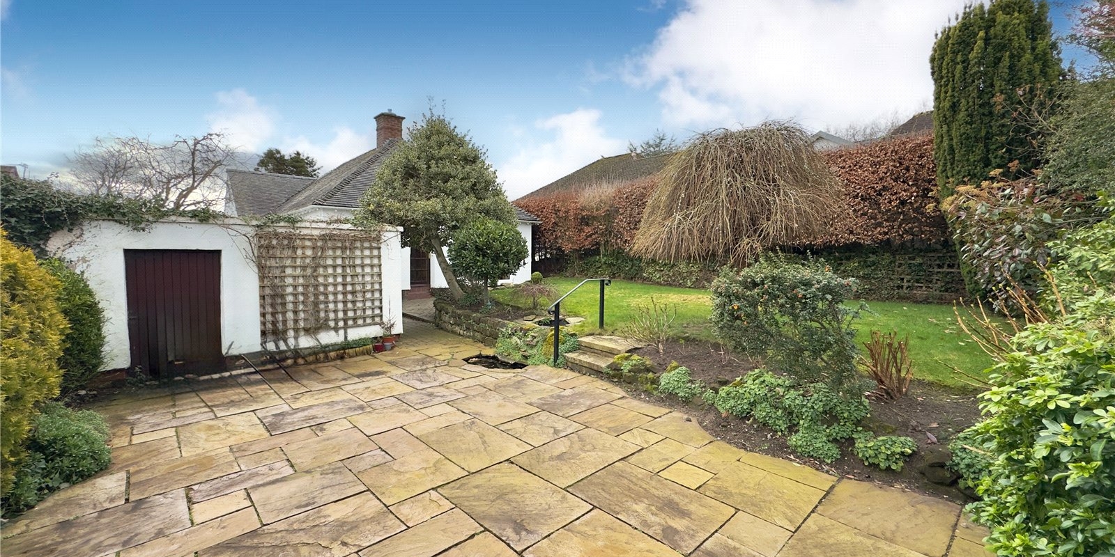 Occupying an elevated setting that enjoys a lovely sense of privacy, this detached two-bedroom bungalow offers comfortable, well-proportioned accommodation in a truly convenient location. The property features two generous bedrooms, a spacious bathroom, and versatile living areas including a lounge, separate dining room and kitchen, a layout that works beautifully as it stands while offering flexibility for the future.