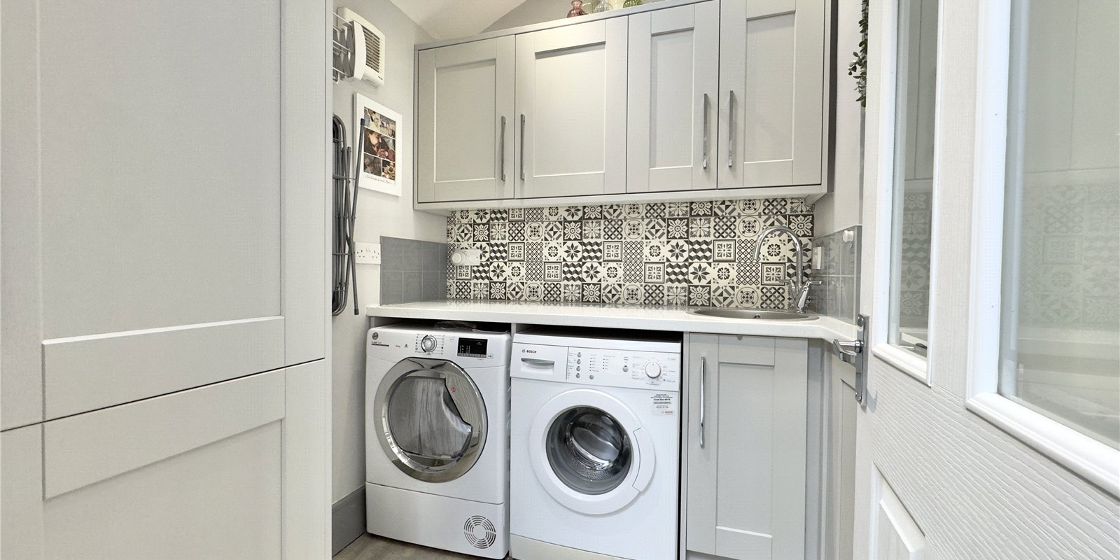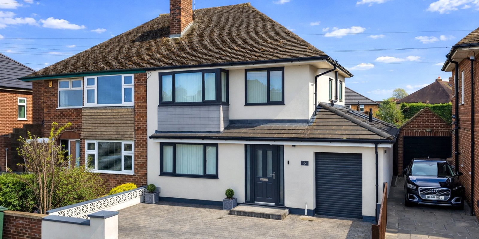 Externally, the landscaped rear garden offers a low-maintenance mix of patio and lawn, perfect for relaxing, family time, or entertaining.