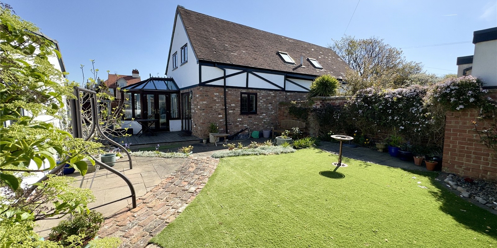 Outside, the private rear garden offers a low-maintenance space to relax after a day at the beach, while the nearby coastline invites daily walks, sea air and ever-changing views.