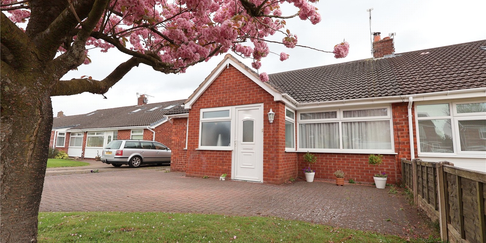 Outside, off-road parking and a picturesque cherry blossom tree adorn the front, while a garage to the side offers additional storage space.