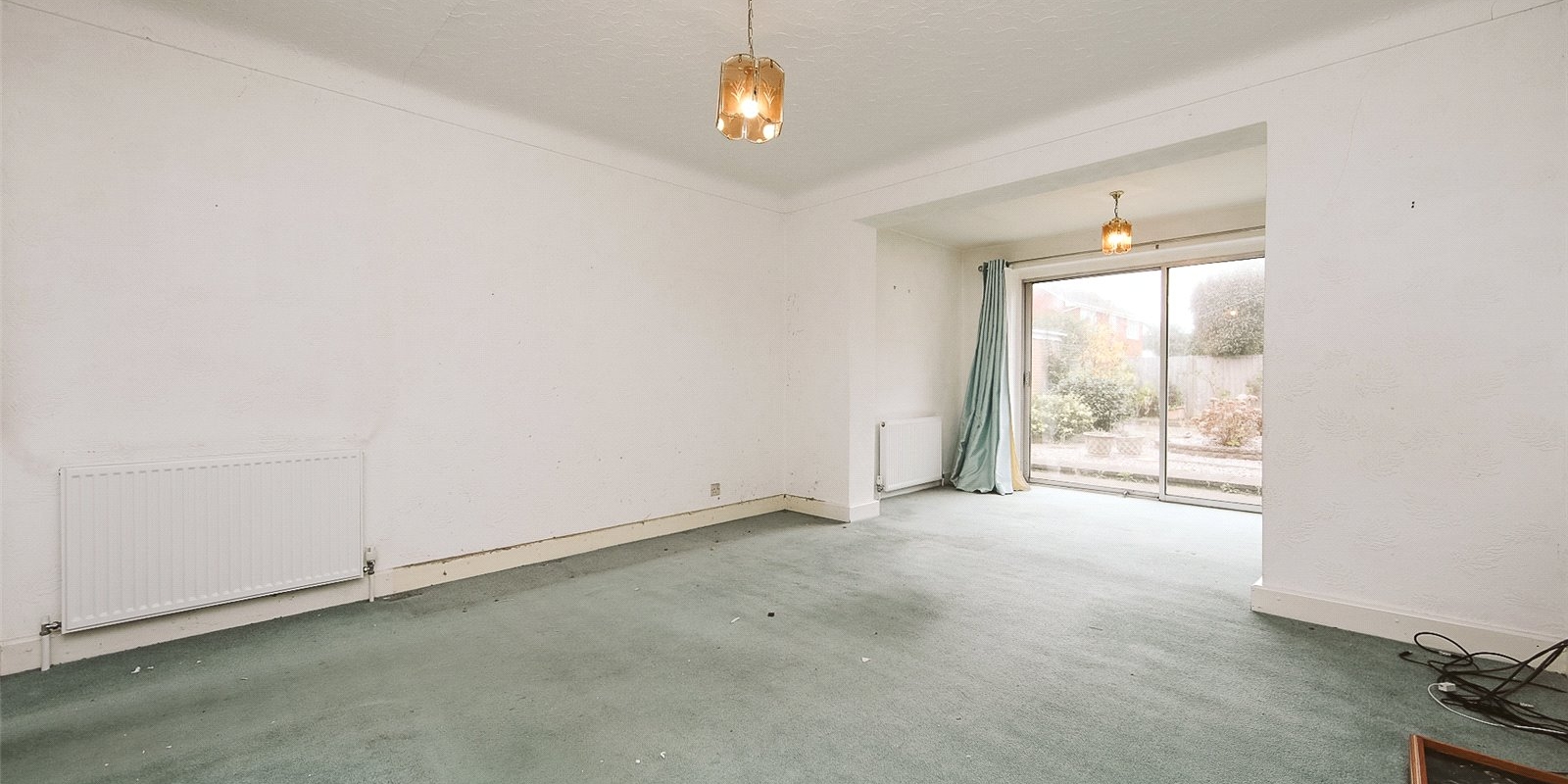 The kitchen offers excellent potential for redesign and links conveniently to a dining room, perfect for family meals and entertaining. A separate laundry room and ground floor WC add practicality to the layout.