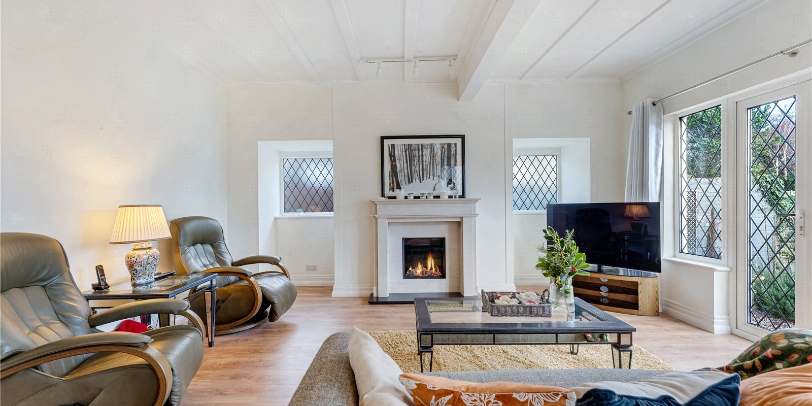 The living space is warm and inviting, centred around a beautiful log burner, creating a cosy yet stylish focal point. The property has been fully rewired throughout and benefits from double glazing, offering peace of mind and comfort. The property further benefits from a separate reception room, offering a wonderful additional living space. This room features a fireplace, creating a cosy and inviting atmosphere, and French doors that open directly onto the garden, allowing natural light to flood in and providing seamless indoor-outdoor living.