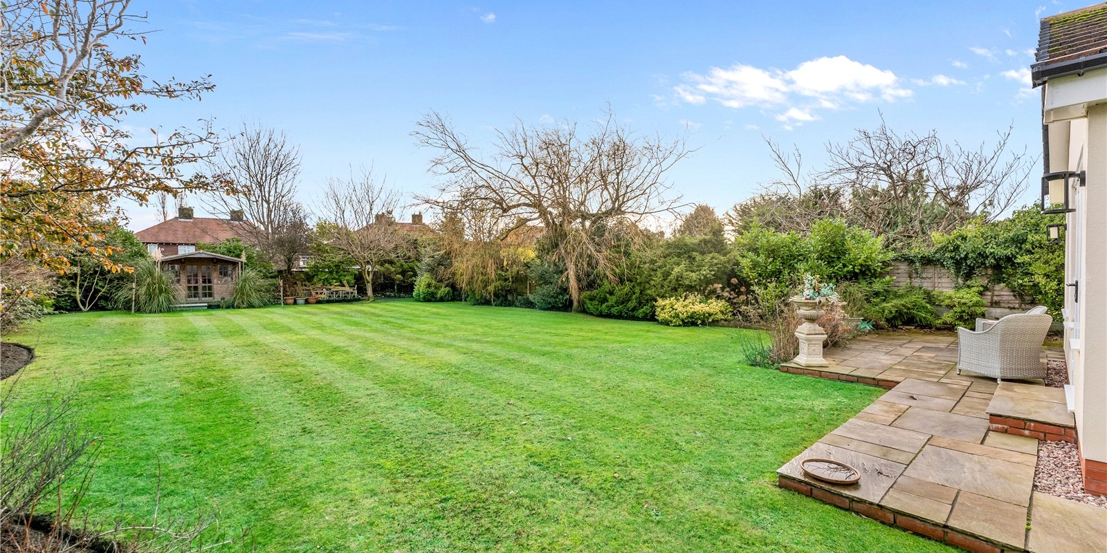 Externally, the property continues to impress. A private and well-maintained garden offers an excellent outdoor retreat, with a summer house positioned at the bottom, perfect for entertaining, hobbies, or relaxation. A side entrance beautifully paved with Indian stone provides convenient access to the rear of the property and adds to the home’s high-quality finish.