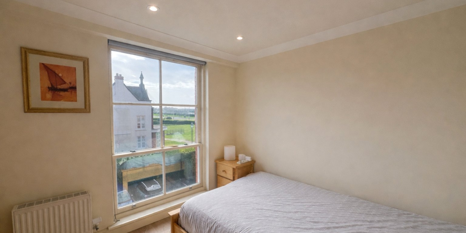 Bedroom Two - 10' 9" x 12' 8" Largest points (3.28m x 3.86m) Double glazed sash window, fitted wardrobes, recessed ceiling with coving & spotlights, central heating radiator, television point and electrical points.