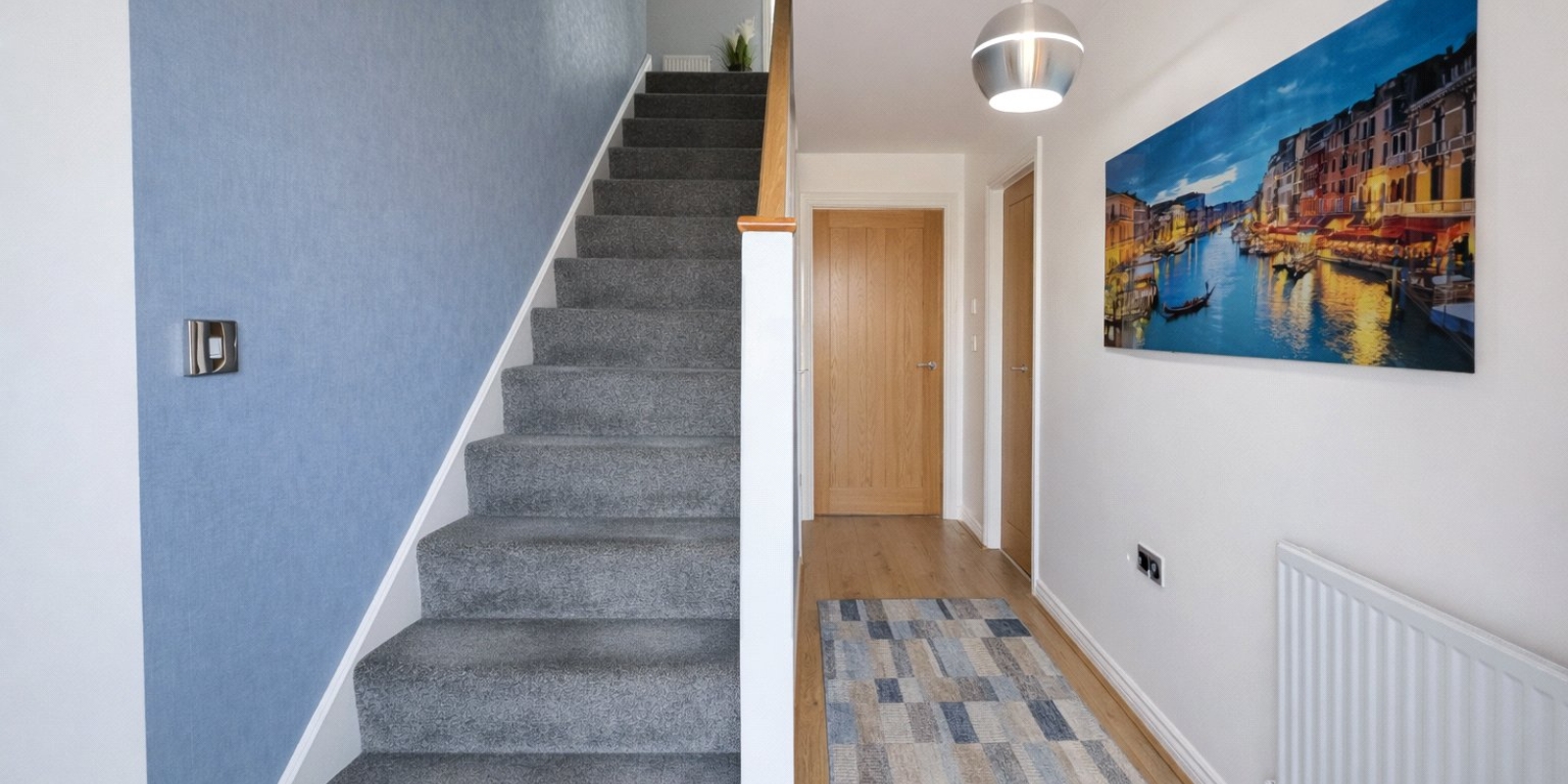 Upstairs, the property offers four well-proportioned bedrooms, ideal for family living. The principal bedroom benefits from its own en-suite shower room, while the remaining bedrooms are served by a contemporary family bathroom. The layout provides flexibility for a range of uses, including guest accommodation or home working.