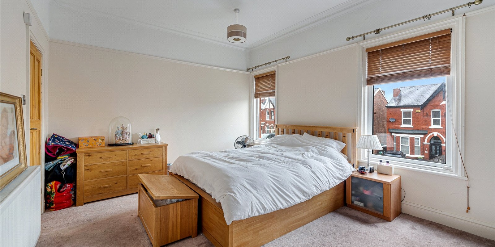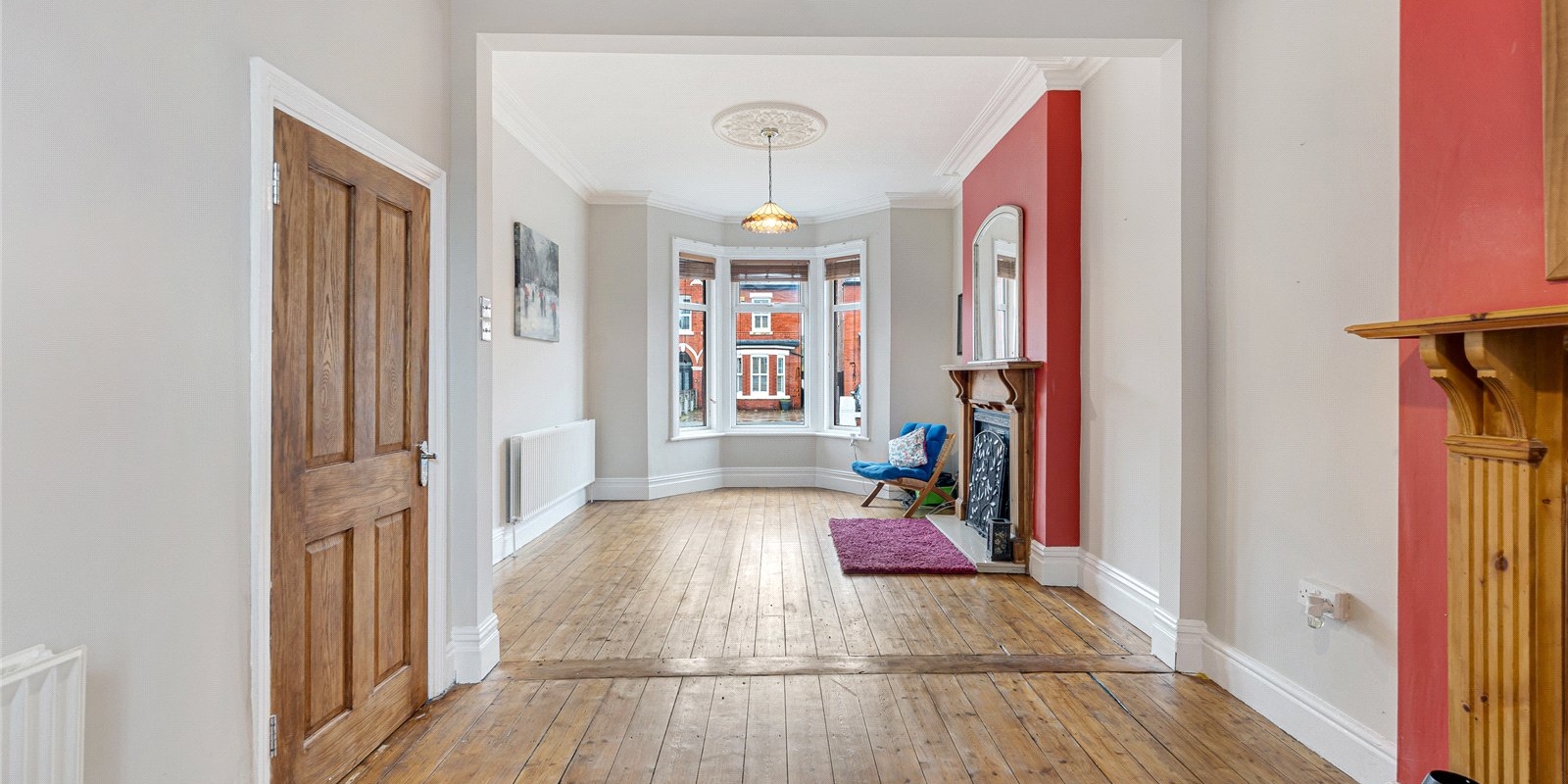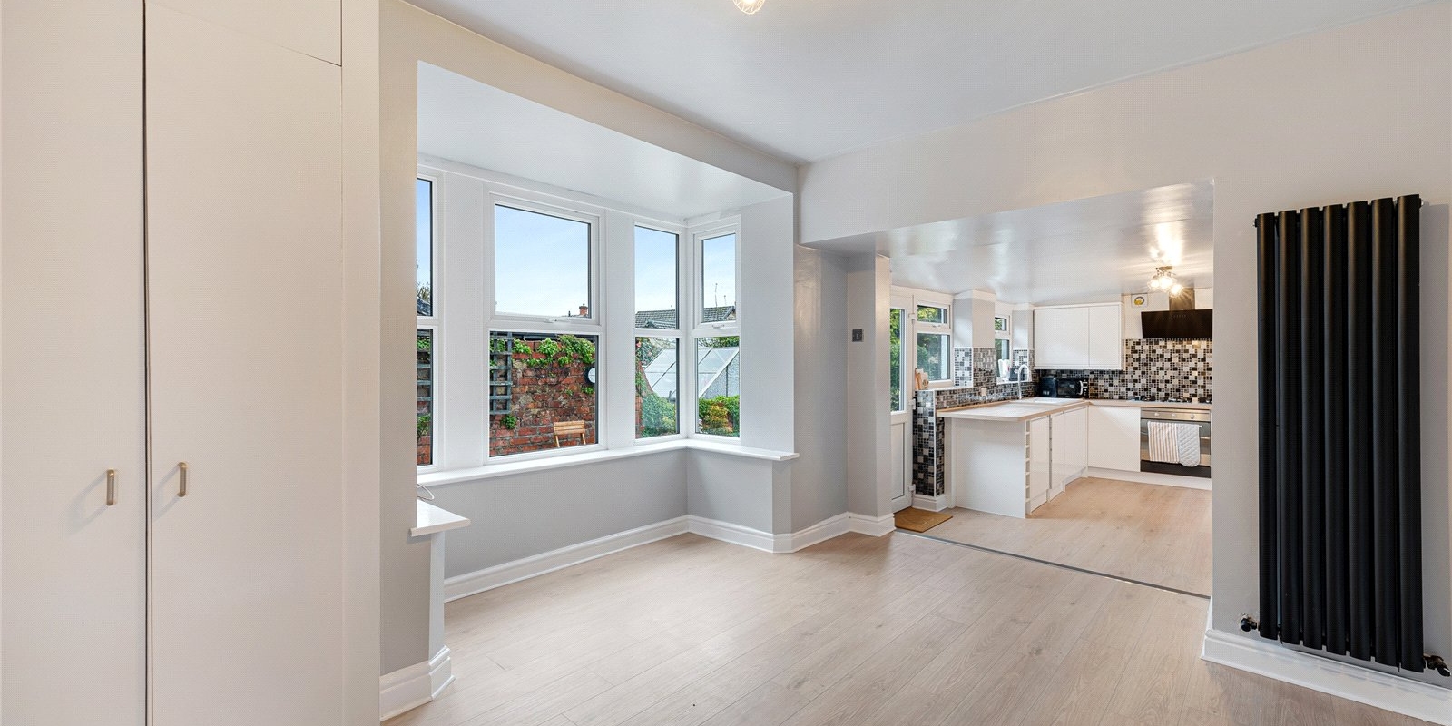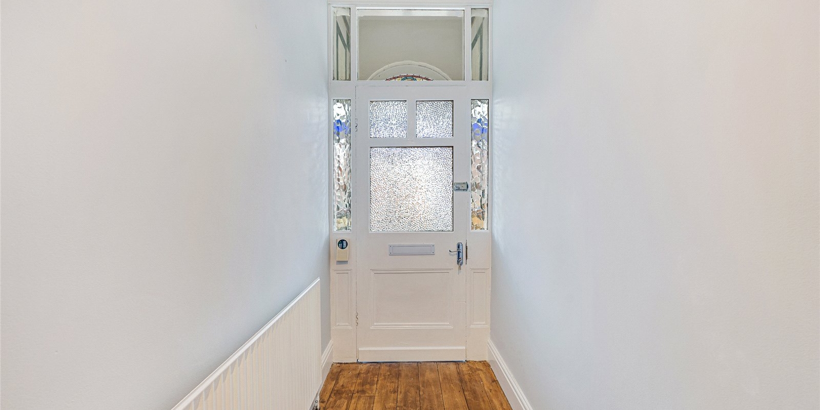 As you step inside, you're greeted by the high ceilings and beautiful stained-glass windows in the hallway, setting the tone for the rest of the property. The two reception rooms have been cleverly combined into one large, open-plan area, creating a bright and airy space, ideal for entertaining or relaxing with the family. The room is enhanced by elegant fireplaces, adding warmth and character to the space.