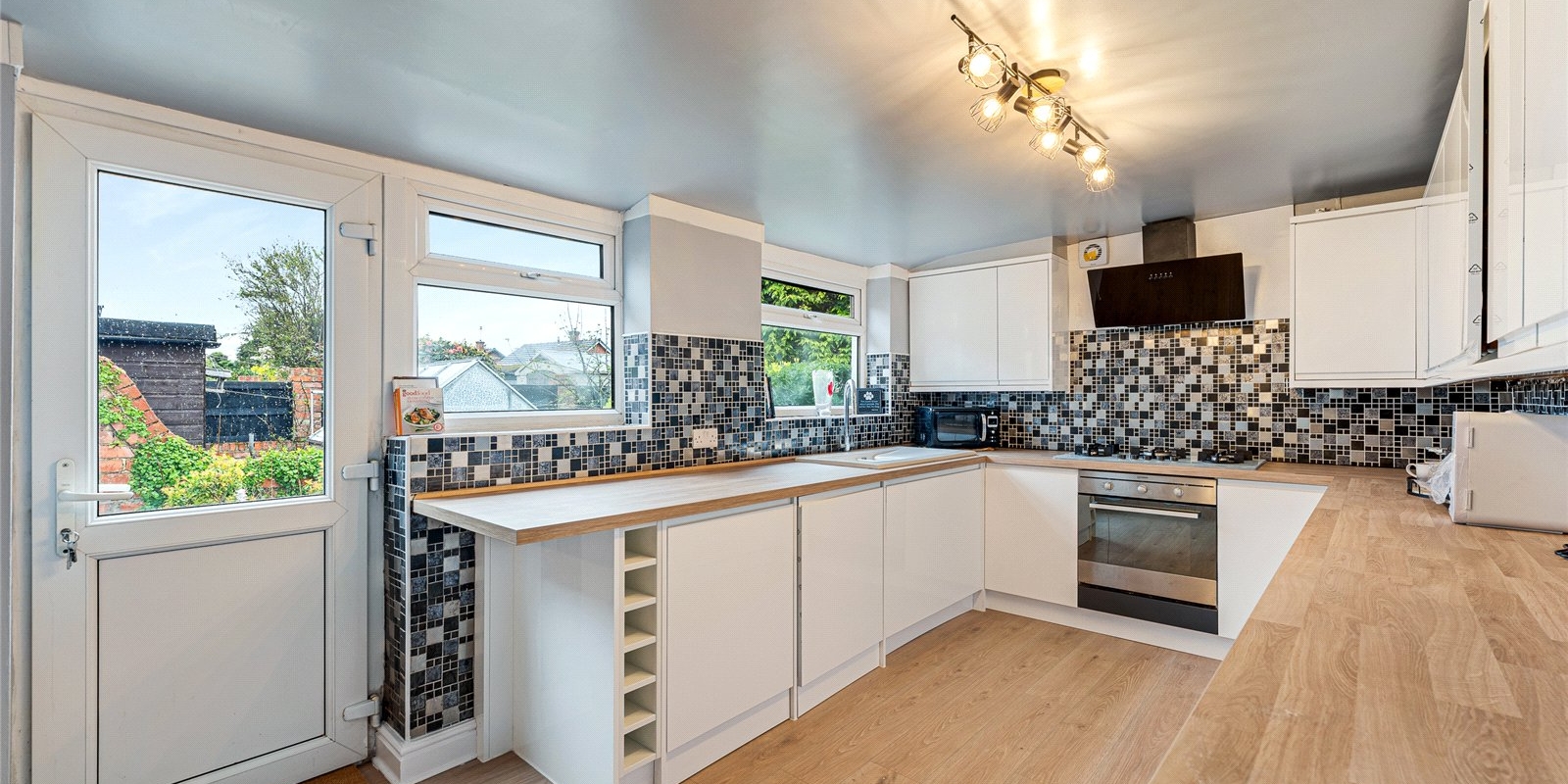 The home has been freshly painted throughout, complementing the natural wooden floors that flow seamlessly from room to room. The newly fitted kitchen is a real highlight, with sleek, modern cabinetry and a step-down design that adds a touch of style. Natural light pours in, creating a welcoming atmosphere that's perfect for both everyday meals and special occasions. The downstairs shower room features a contemporary walk-in shower, offering convenience and comfort.