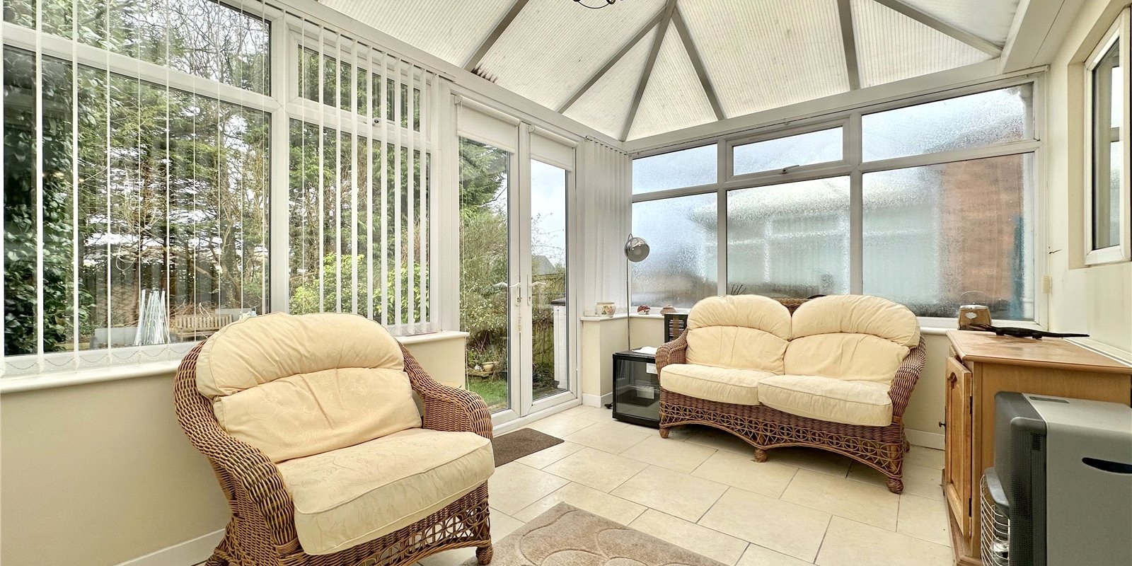 Step inside to discover a warm entrance hall, leading to a spacious living room boasting bay windows, a cozy lounge, and an inviting conservatory, perfect for relaxation or entertaining. The kitchen, complete with integrated appliances, awaits culinary adventures.