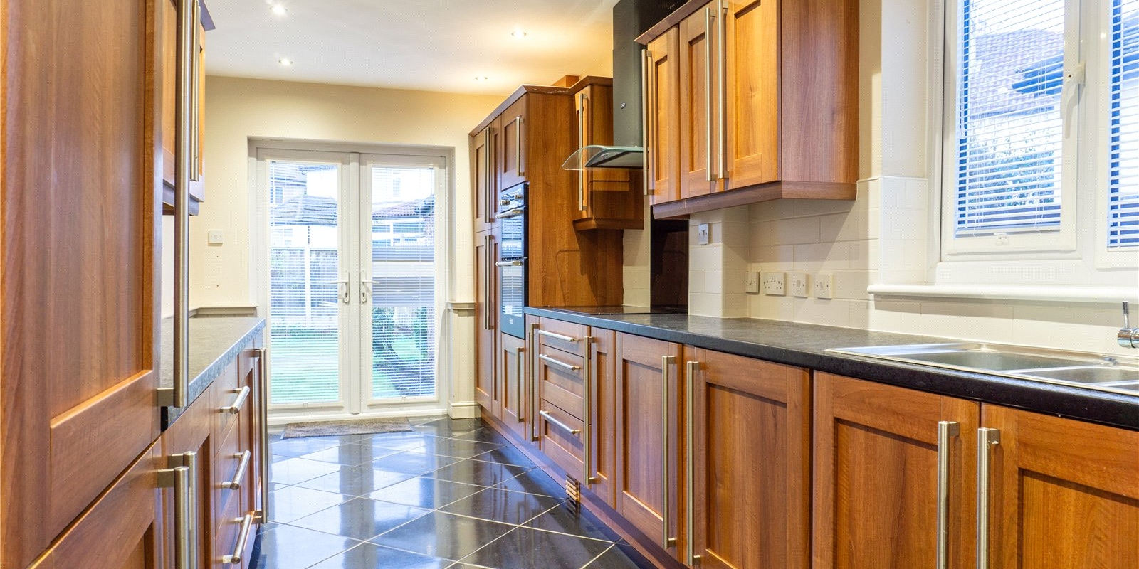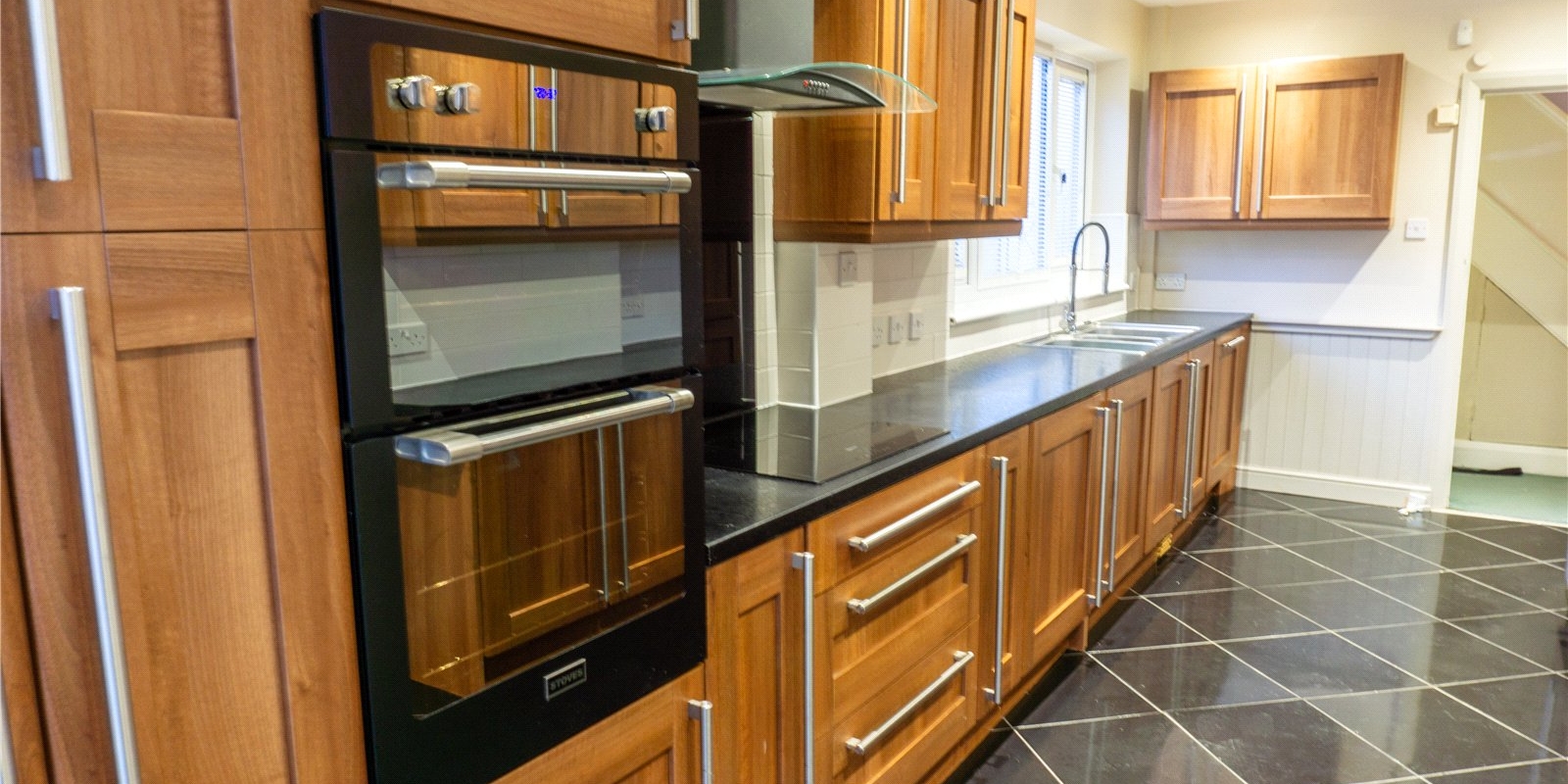 The ground floor comprises porch, large entrance hall and two large reception rooms, offering flexibility for a dining or additional family room. The kitchen has been recently updated to a high standard with Neff and Dimplex brands, with plenty of storage and space for food preparation. At the end of the room a breakfast table and chairs or island could also be added. A handy WC saves guests the trouble of having to venture upstairs when you are entertaining.
