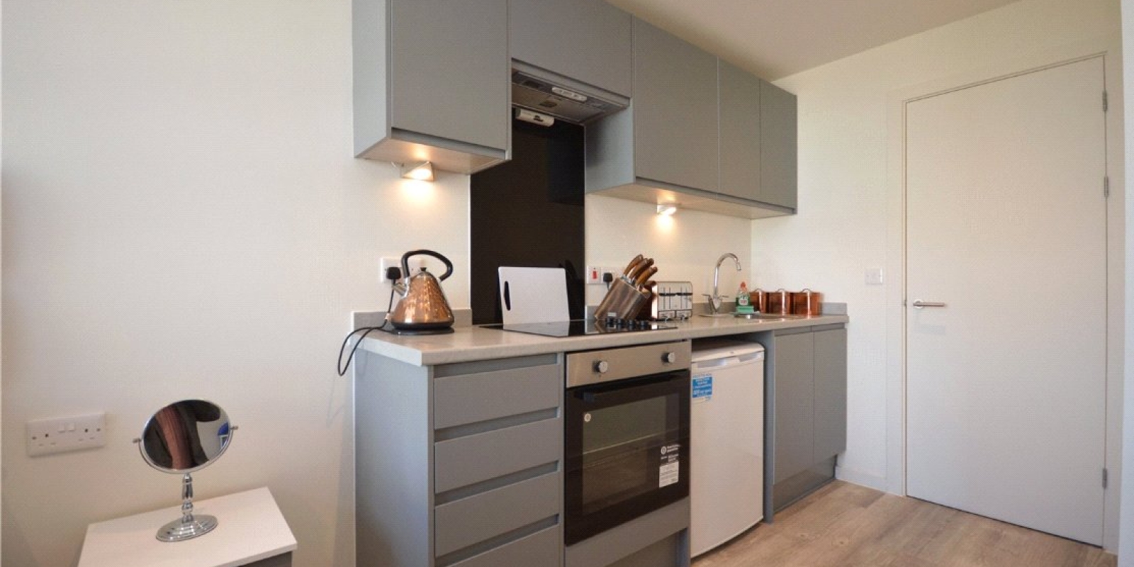 The sleek kitchen is fully equipped with high-quality integrated appliances, including an oven and hob making it both functional and stylish. The living area is bright and inviting, with ample space for relaxation, dining, and a comfortable sleeping area. Floor-to-ceiling windows allow plenty of natural light to flow in, while the private balcony provides the perfect spot to unwind and enjoy city views.