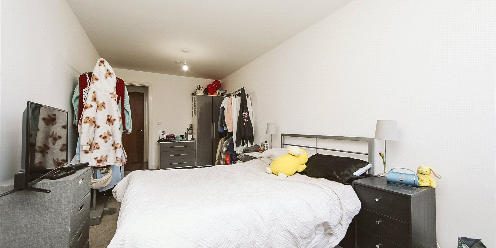 The large double bedroom offers a peaceful retreat, with ample space for storage, while additional built-in storage solutions throughout the flat help maximise space and functionality.