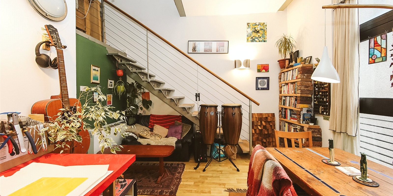 The property is bursting with character, offering a unique split-level living space with two functional living spaces.