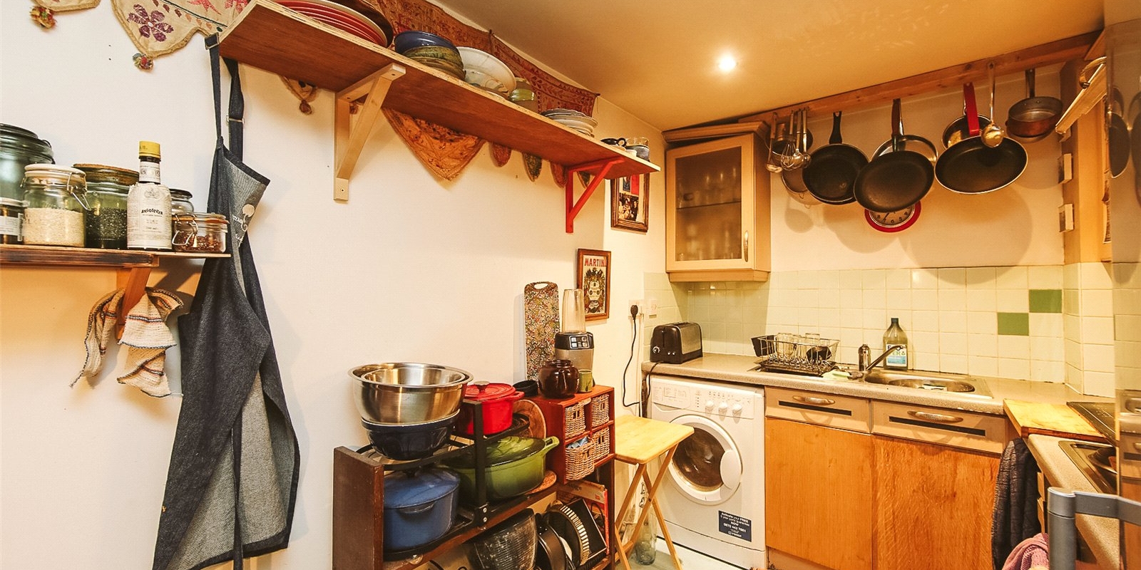 The second bedroom is a mezzanine set within the top of the block, looking over a large multi-functional reception room. The kitchen has plenty of storage and space for food preparation. The primary living room opens out onto a balcony space, perfect for enjoying a coffee in the mornings.
