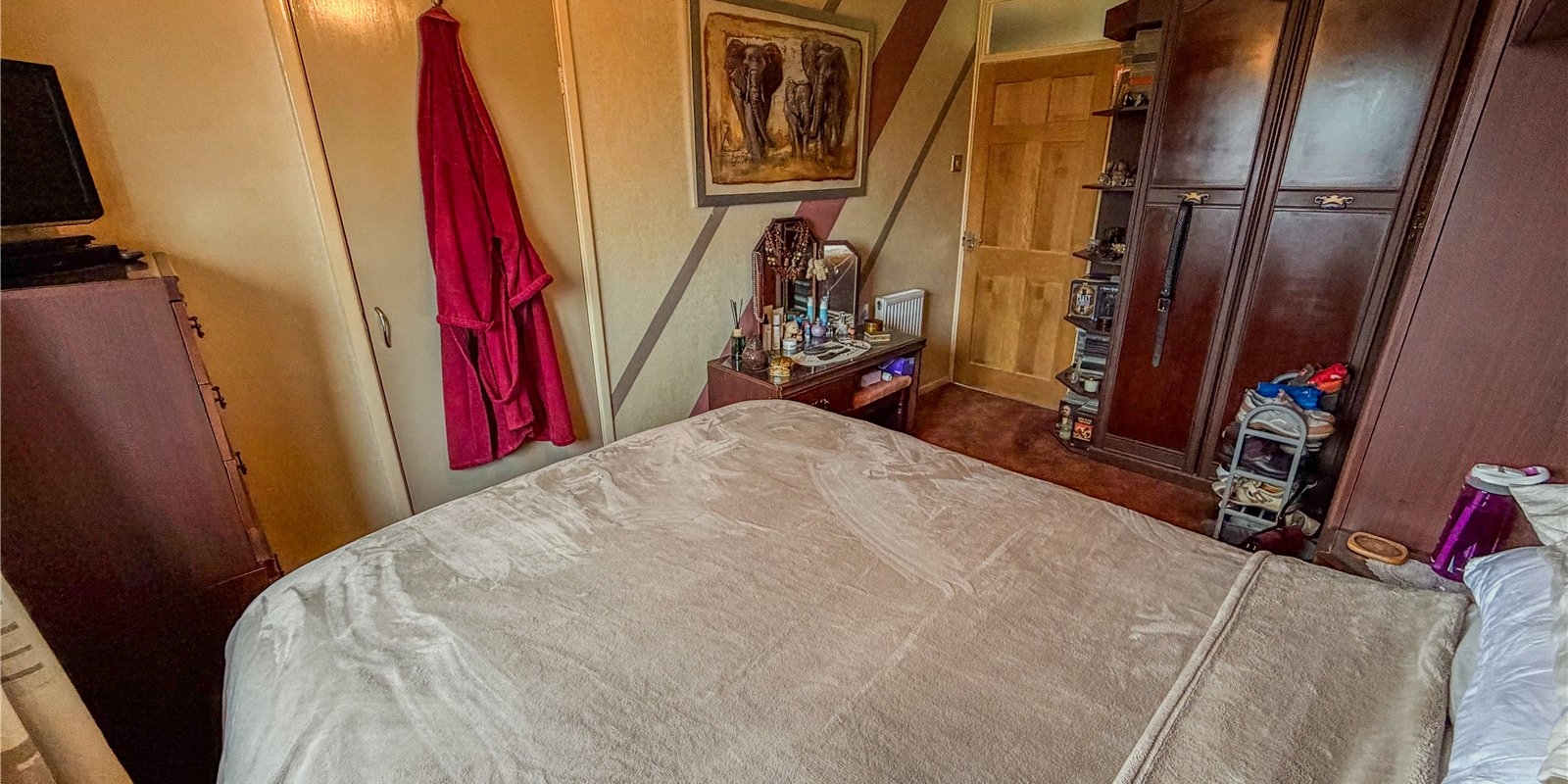 Upstairs, the property features three well-proportioned bedrooms. The main bedroom is a generous double, while the second bedroom also accommodates double furnishings comfortably. The third bedroom works well as a child’s room, study or dressing room, giving buyers flexibility depending on their lifestyle. The family bathroom includes a three-piece suite and provides a clean, functional environment with room for updating to personal taste.