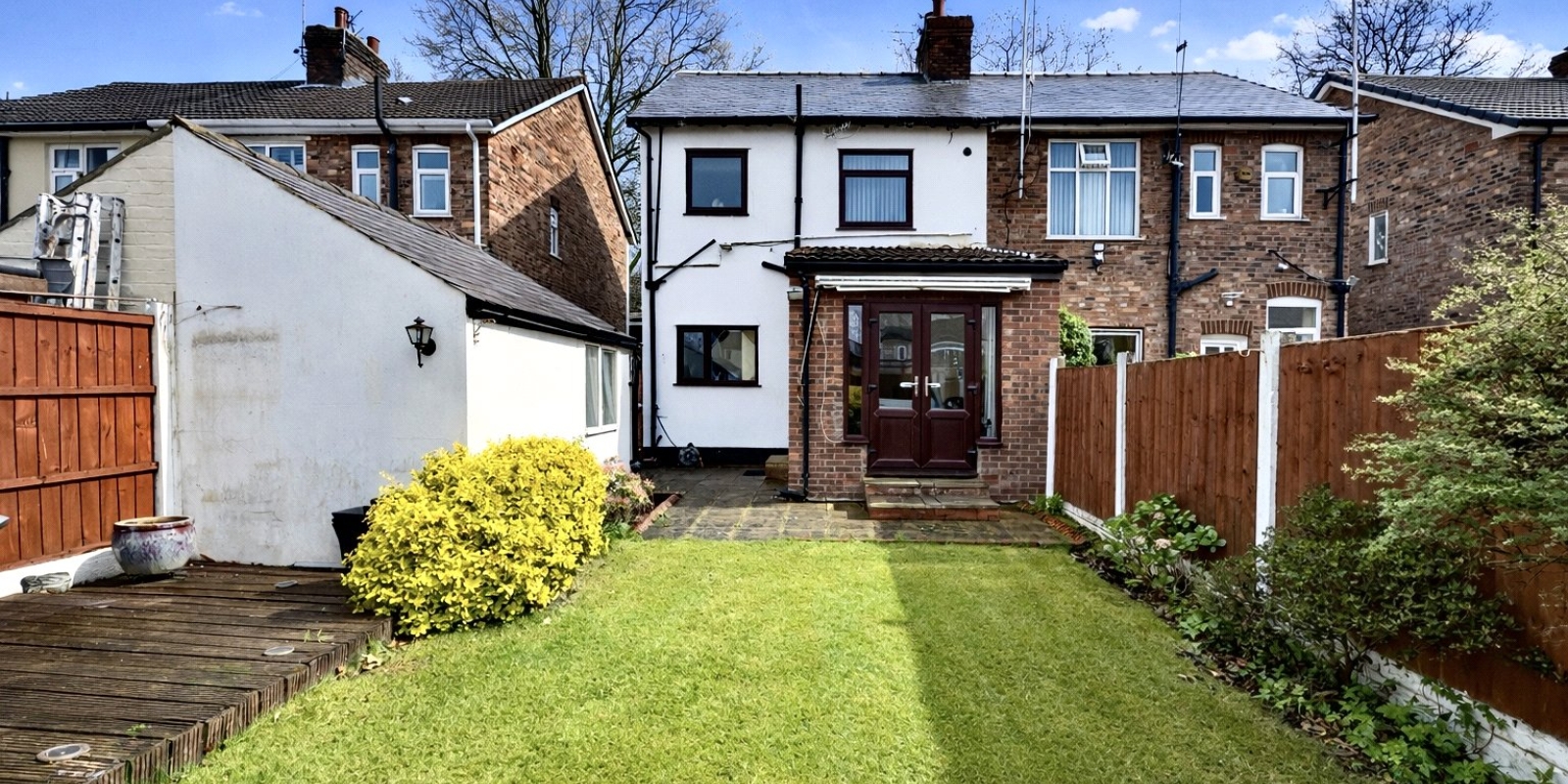 The kitchen sits to the rear and provides a functional hub of the home, with direct access out to the garden. The outdoor space is a real highlight — a generous rear garden offering plenty of room for family life, entertaining, or future landscaping ideas.
