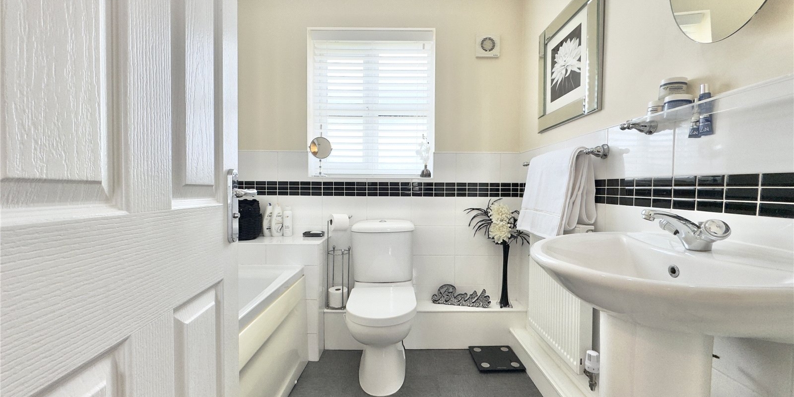 Upstairs, four well-proportioned bedrooms provide excellent flexibility, with the main bedroom benefiting from its own ensuite. A family bathroom completes the first floor, offering a functional layout for busy households.