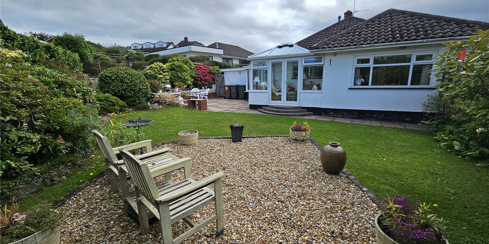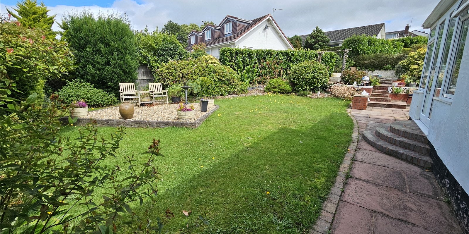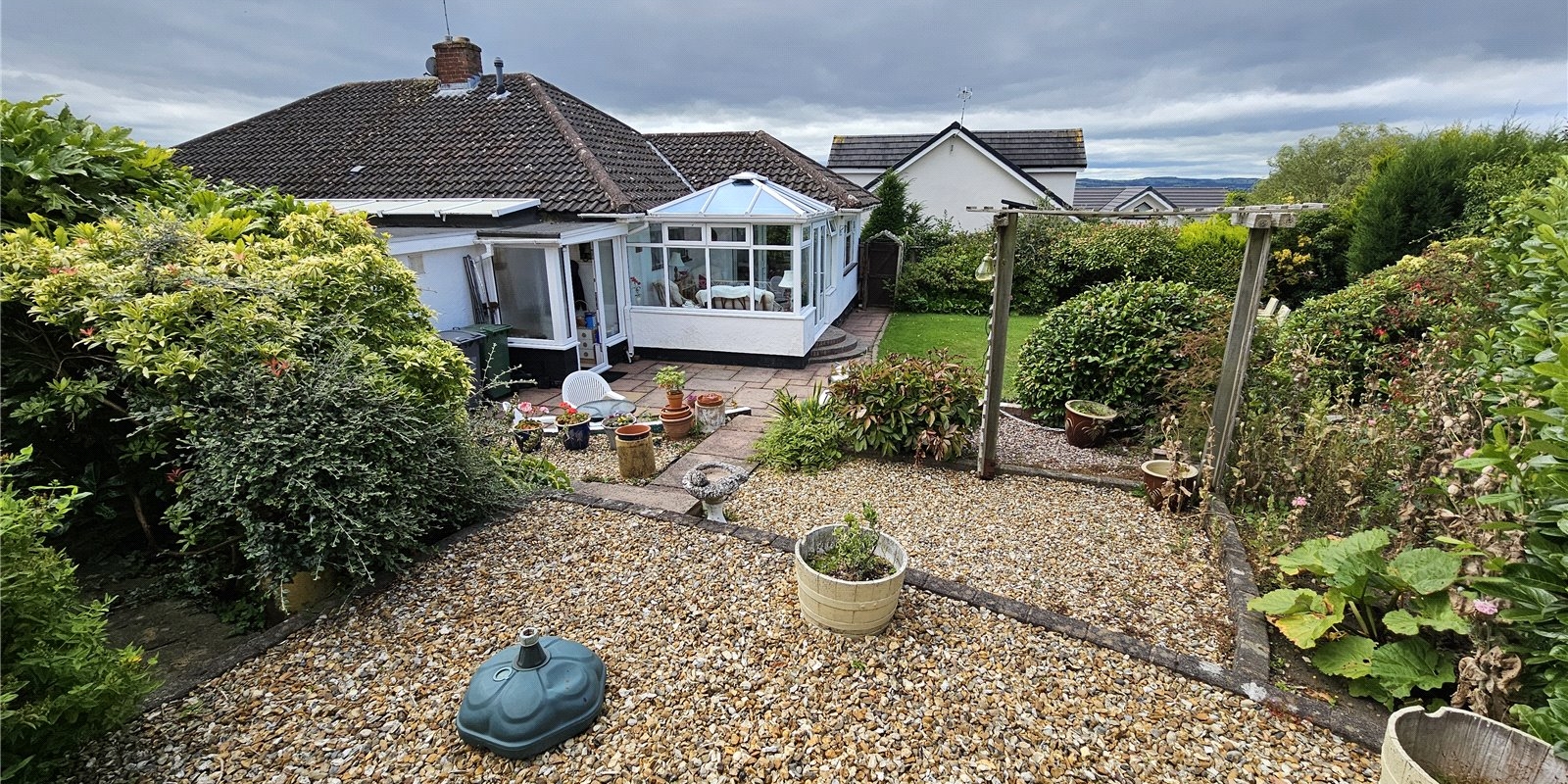 Outside is where the property shows itself even further. The property has a lawned front garden. At the rear of the bungalow is the true showpiece, with a large patio area overlooking the lower lawned area which is very private with well-established boarders.