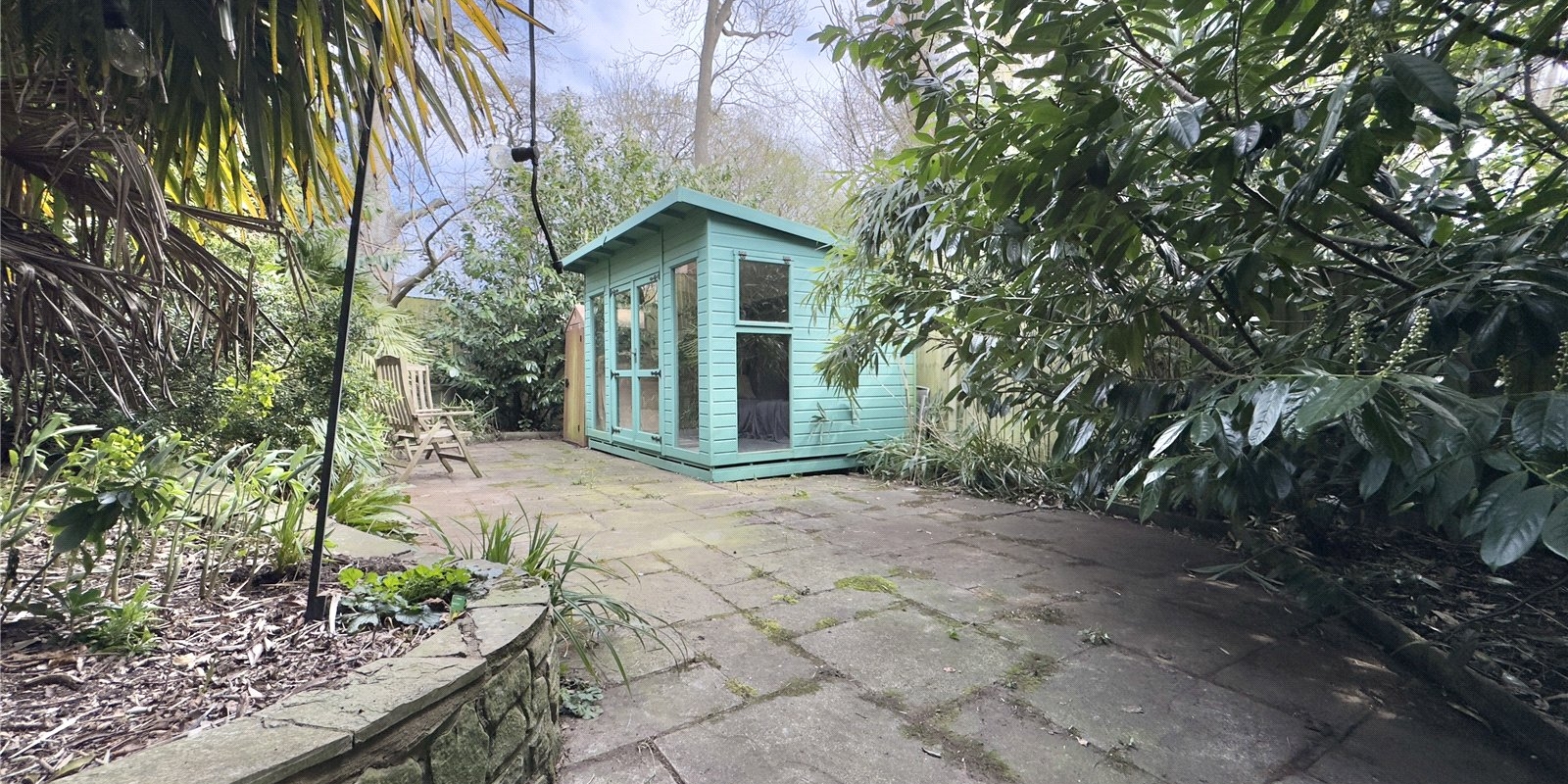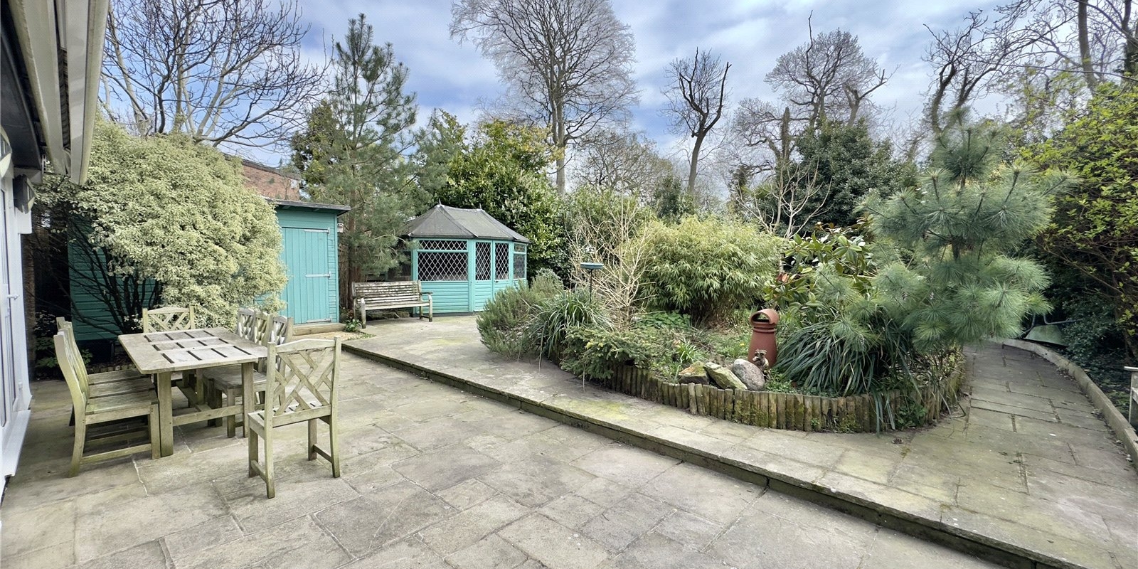 At the rear of the property, you’ll find a beautifully maintained flagged patio garden with a feature pond, and a hidden paved patio garden offering a private retreat. The former garage has been cleverly converted into office space, and there’s also a large summer house and storage shed, providing excellent versatility and storage.