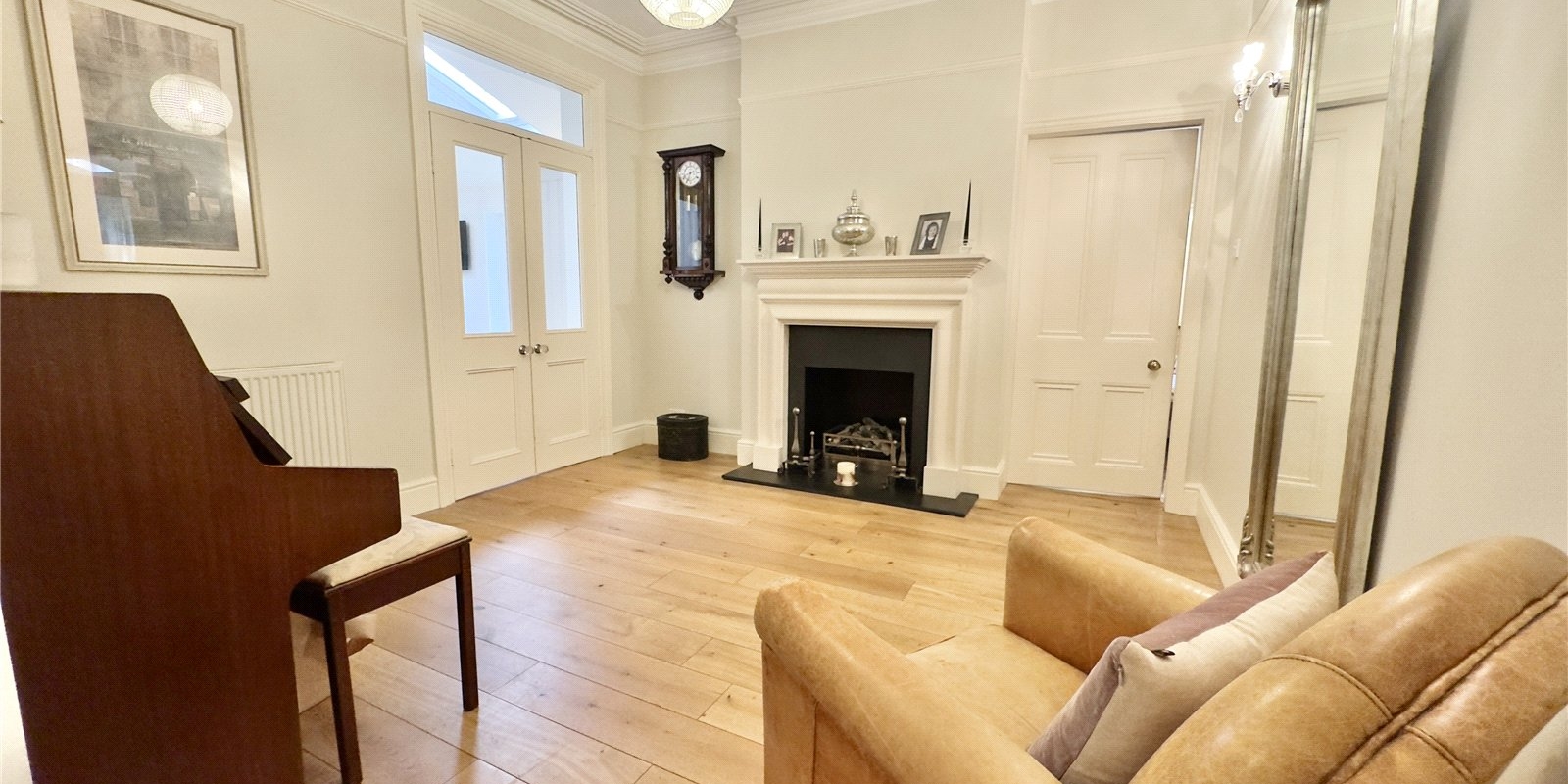 As you enter, a welcoming reception hallway leads into three beautifully proportioned and light-filled reception rooms. The bay-fronted lounge, a spacious family room, and an additional sitting room each retain their original fireplaces that have been updated with Chesney Fireplaces, offering charm and warmth while providing flexible space for both family life and entertaining.