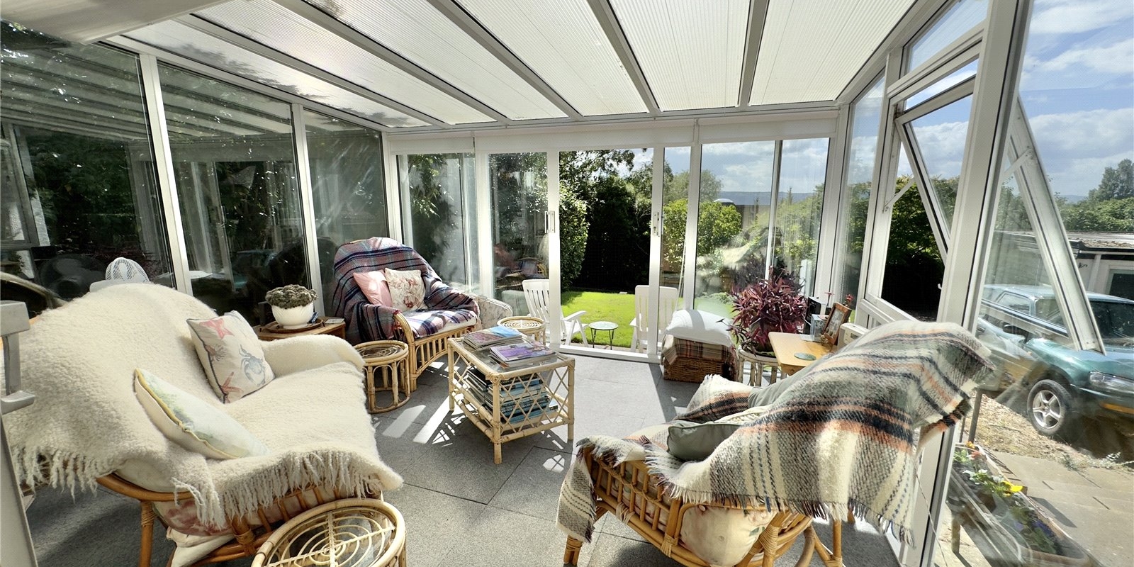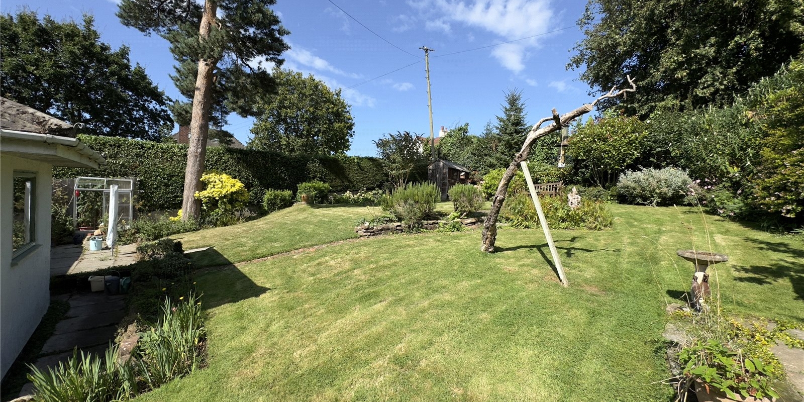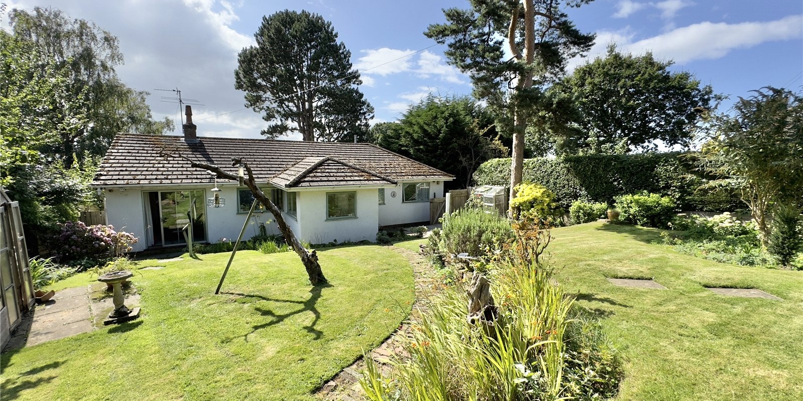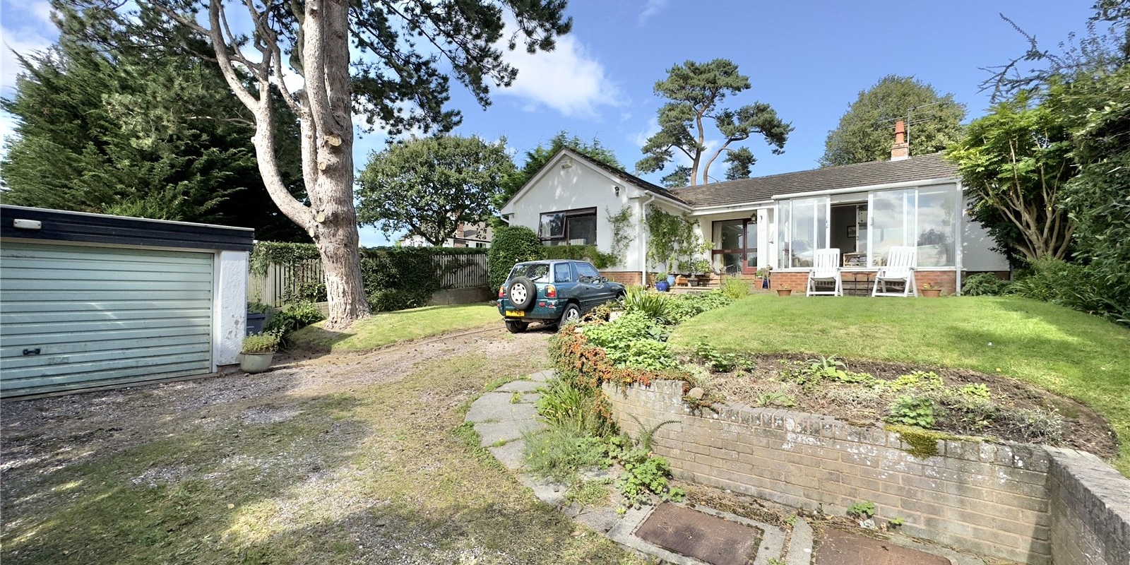 This bungalow is approached from a private bridleway and is situated in secluded grounds with stunning views of the Dee Estuary across to the Welsh Hills! A long driveway leads towards the detached double garage. Established trees and shrubs along the front and side of the plot gives plenty of privacy from the lane. The elevated position affords fantastic views over the Dee Estuary towards Wales.