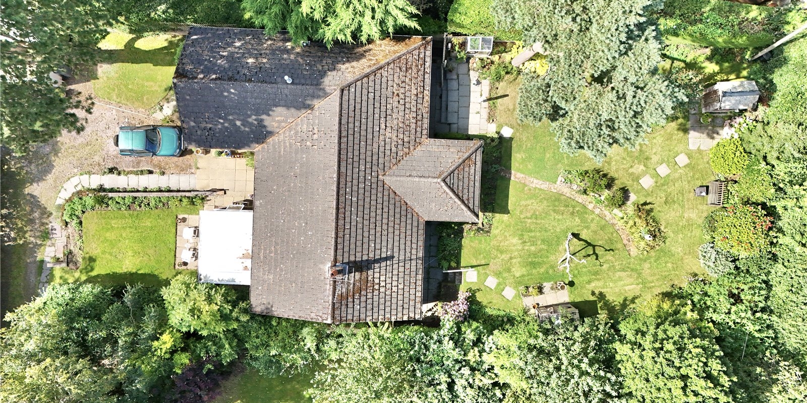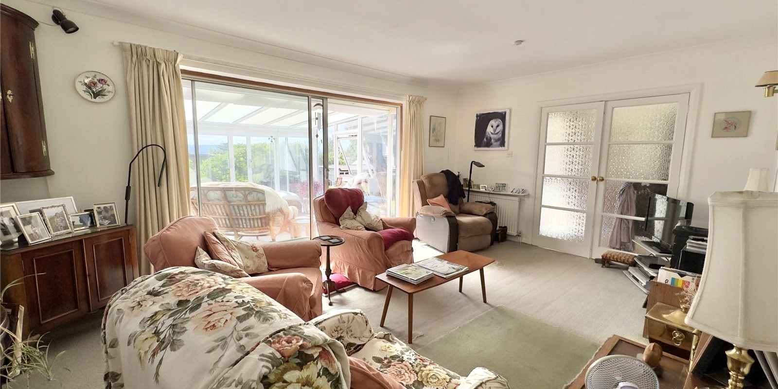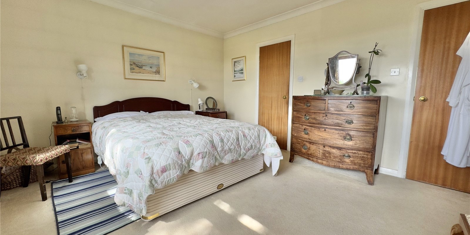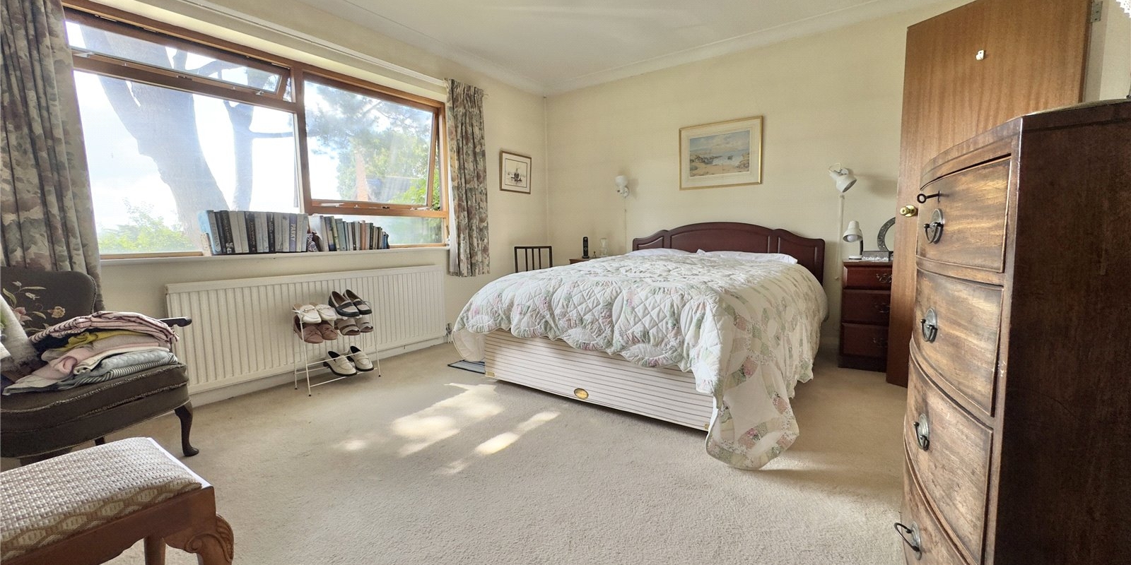 This bungalow is approached from a private bridleway and is situated in secluded grounds with stunning views of the Dee Estuary across to the Welsh Hills! A long driveway leads towards the detached double garage. Established trees and shrubs along the front and side of the plot gives plenty of privacy from the lane. The elevated position affords fantastic views over the Dee Estuary towards Wales.