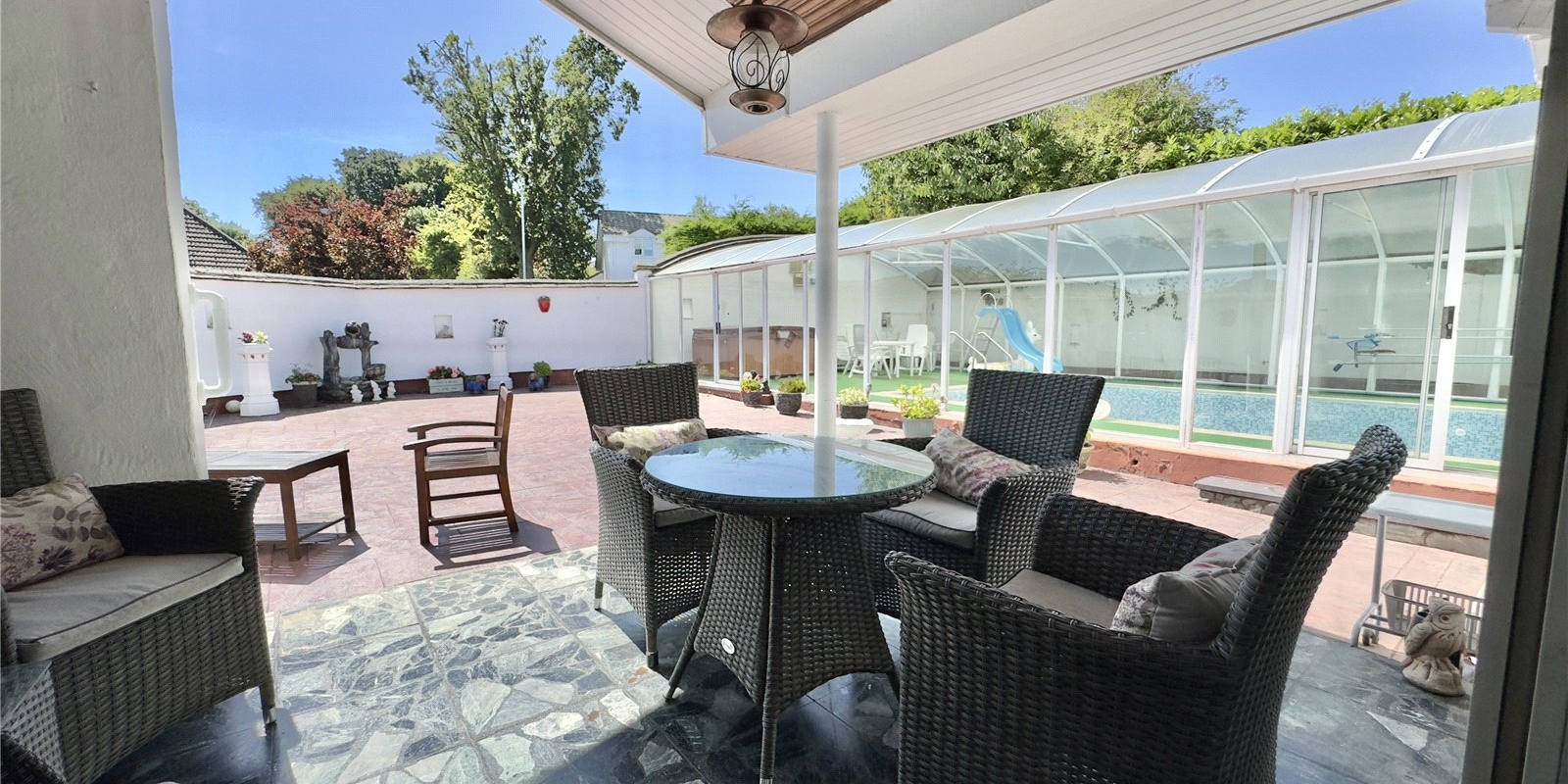 A standout feature of this exceptional home is the indoor swimming pool, complete with its own changing room, WC, and shower – creating a private leisure experience that can be enjoyed year-round.
