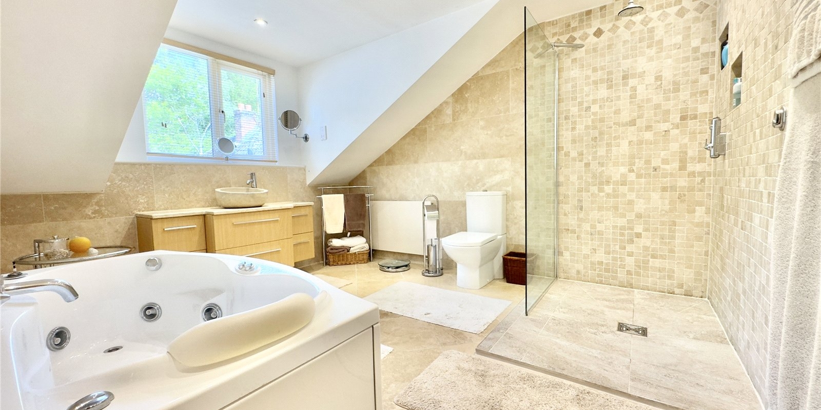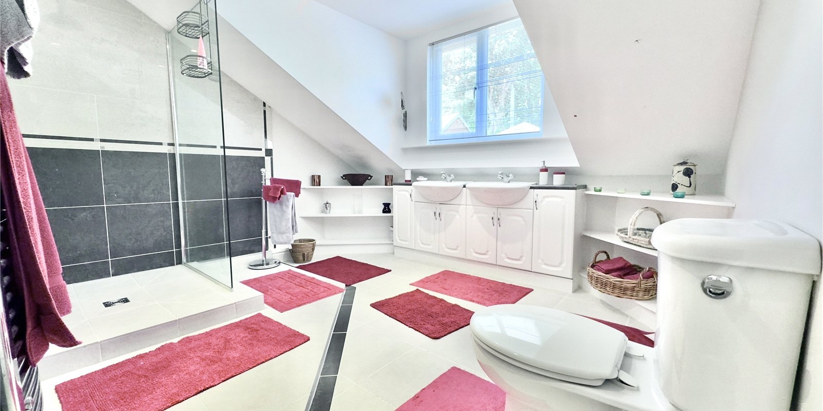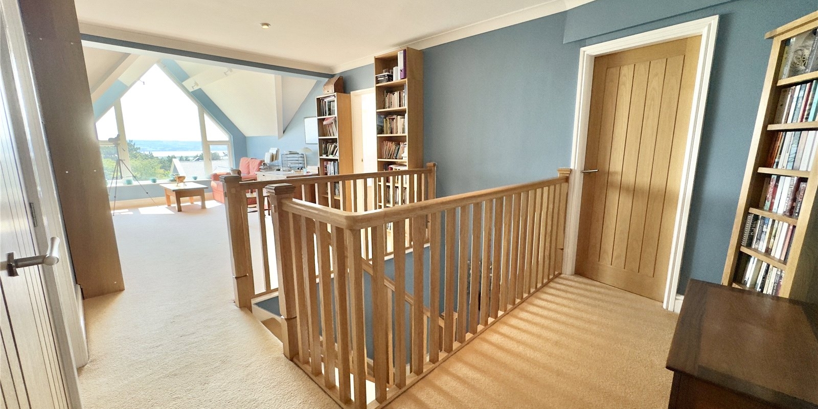 Upstairs, the expansive landing currently serves as a study area and offers a perfect spot to sit and enjoy the views. The first floor is home to four generous double bedrooms. The master bedroom benefits from a private en-suite, while bedrooms two and three are linked by a Jack and Jill en-suite. A contemporary four-piece family bathroom completes the first-floor accommodation.