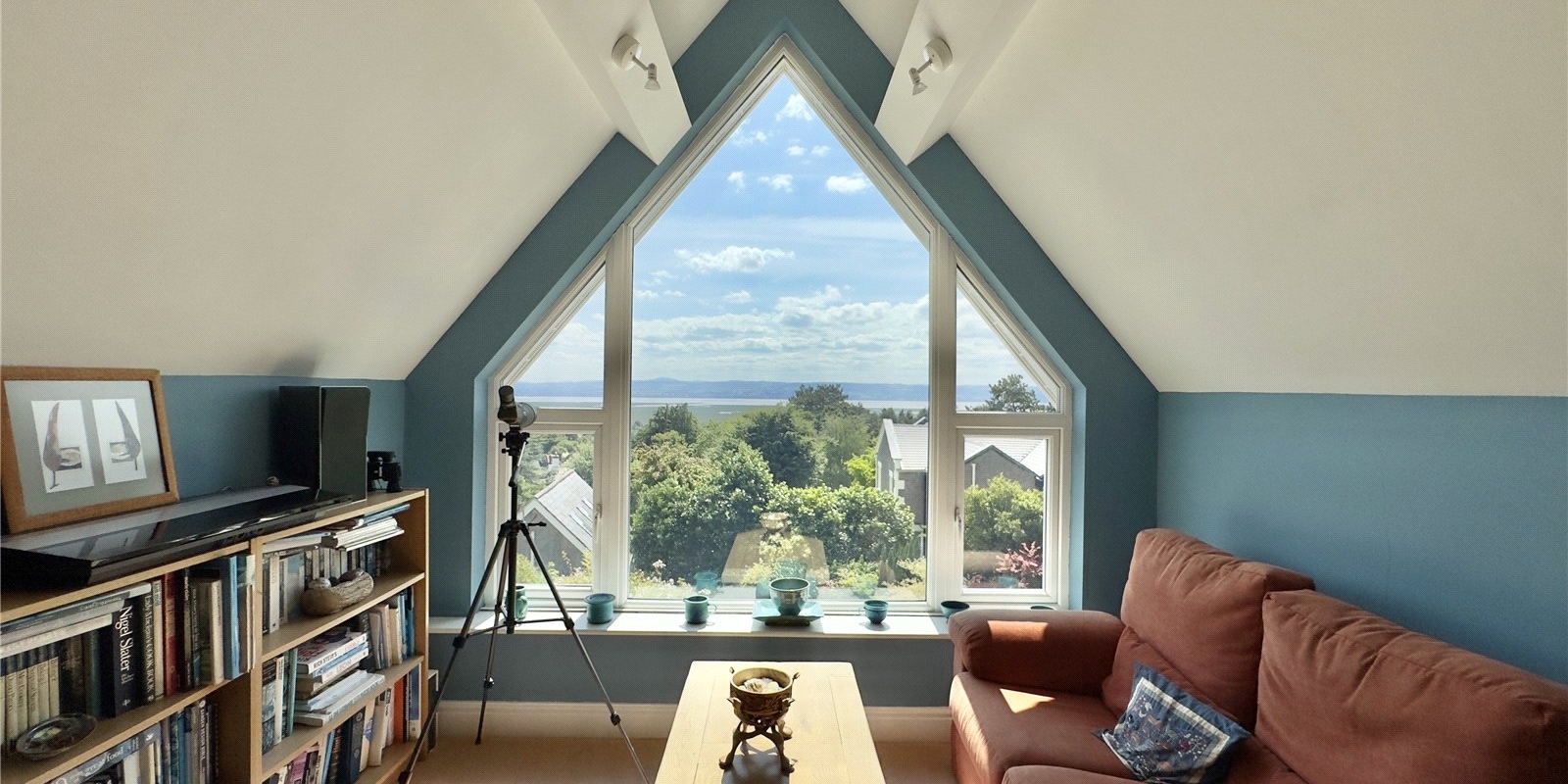 The home enjoys panoramic views across the Dee Estuary and out towards the Welsh Hills, providing a striking backdrop to everyday life. Inside, the ground floor features a spacious and welcoming hallway that provides central access to all the main living areas. There is a stylish bay-fronted dining room, a large and comfortable lounge, and a substantial open-plan kitchen and dining area. The kitchen is well-fitted and includes French doors that open directly onto the landscaped rear garden, creating a seamless flow between indoor and outdoor living. Practical additions include a utility room, a separate boot room, and a convenient ground floor WC.
