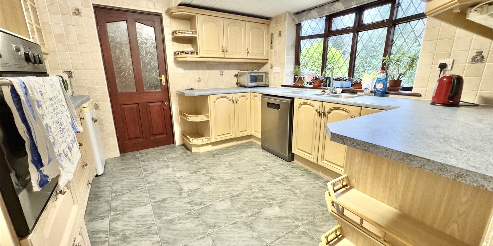Externally, the property enjoys a large driveway providing ample off-road parking and leading to a detached garage, with a useful utility room located to the rear. A covered porch links the bungalow to the garage and utility area. The front garden is mainly laid to lawn, while the rear garden is also lawned, exceptionally private, and backs directly onto a rural garden, creating a peaceful and secluded outdoor setting.
