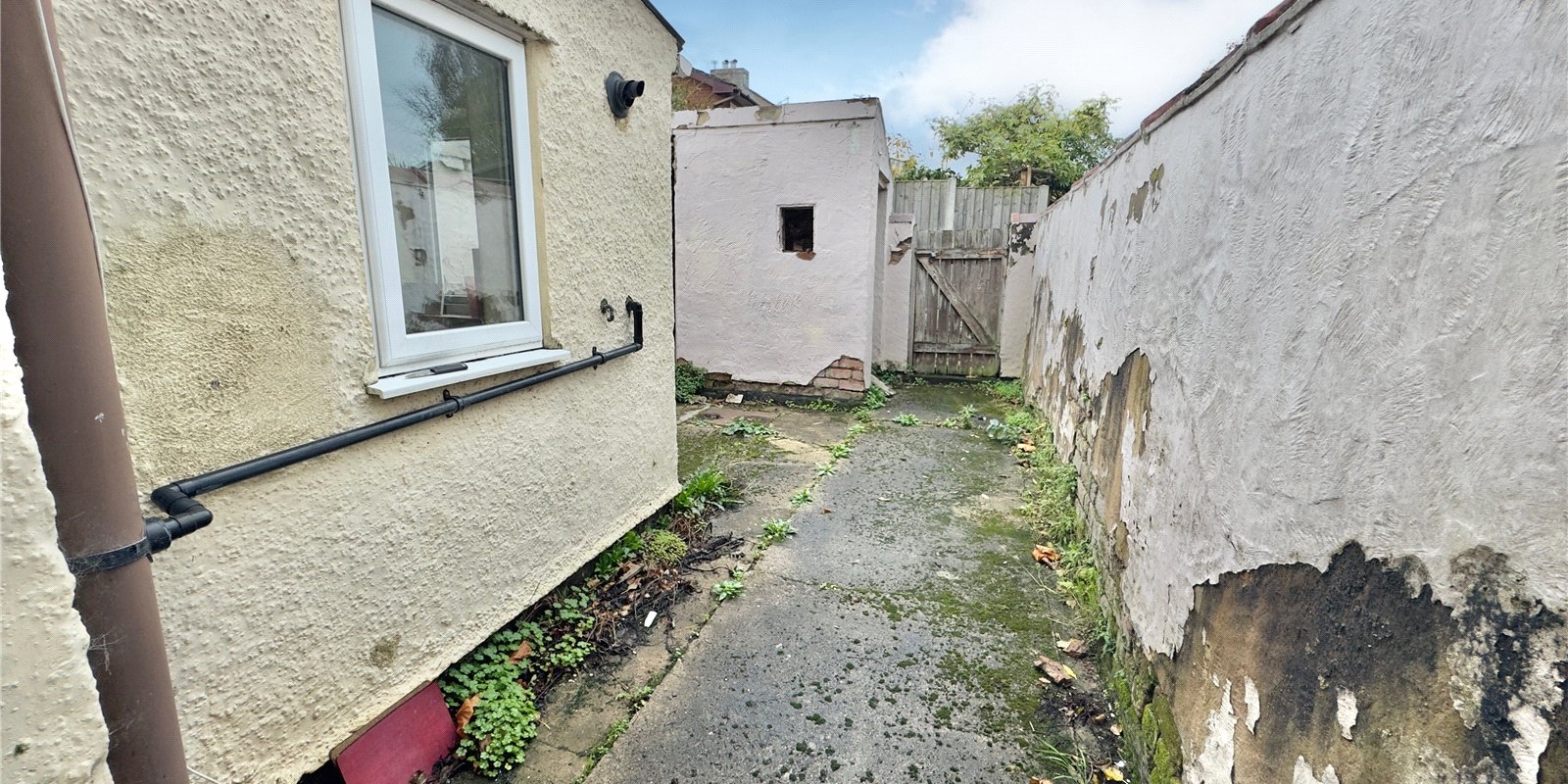 Outside, the property benefits from a driveway at the front, providing convenient off-road parking. To the rear, there is a private courtyard with a brick-built outhouse, ideal for storage or workshop use.