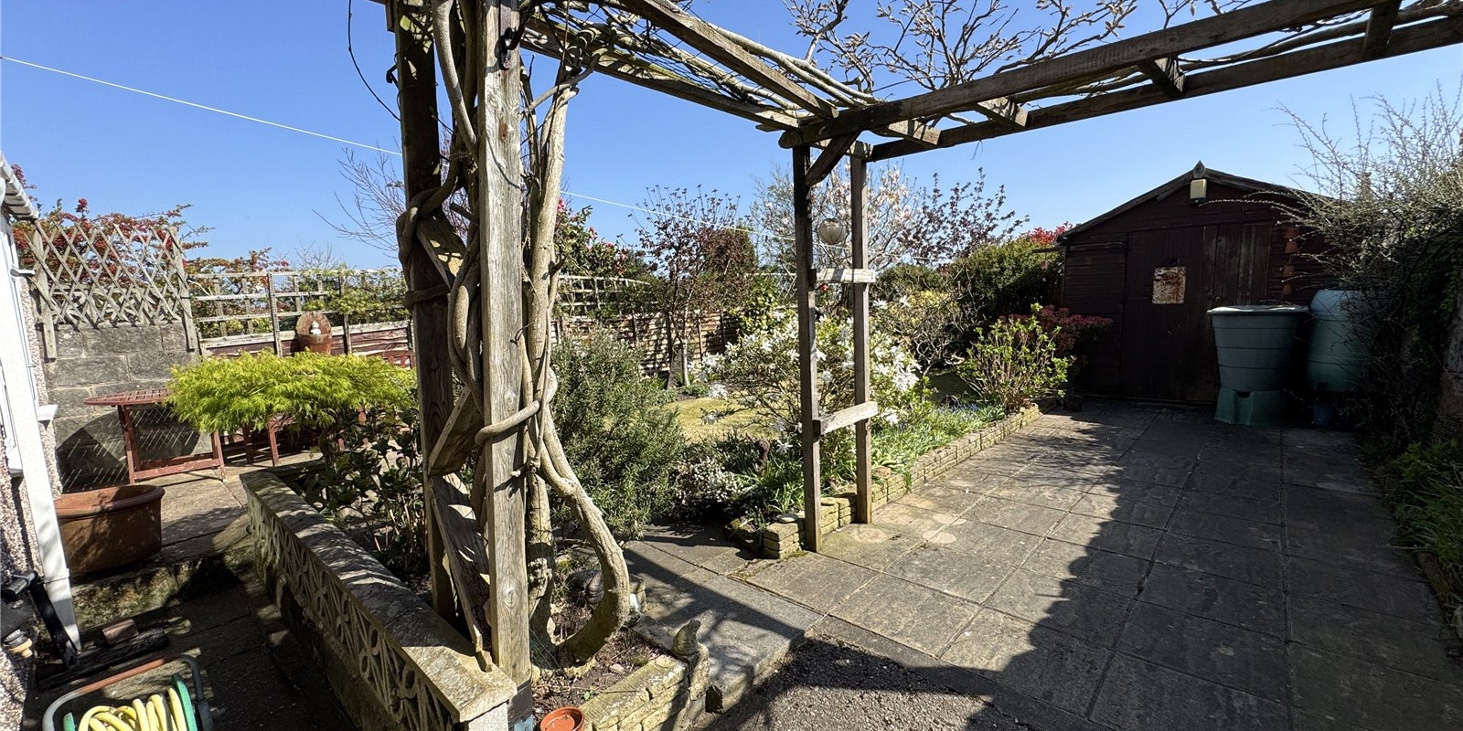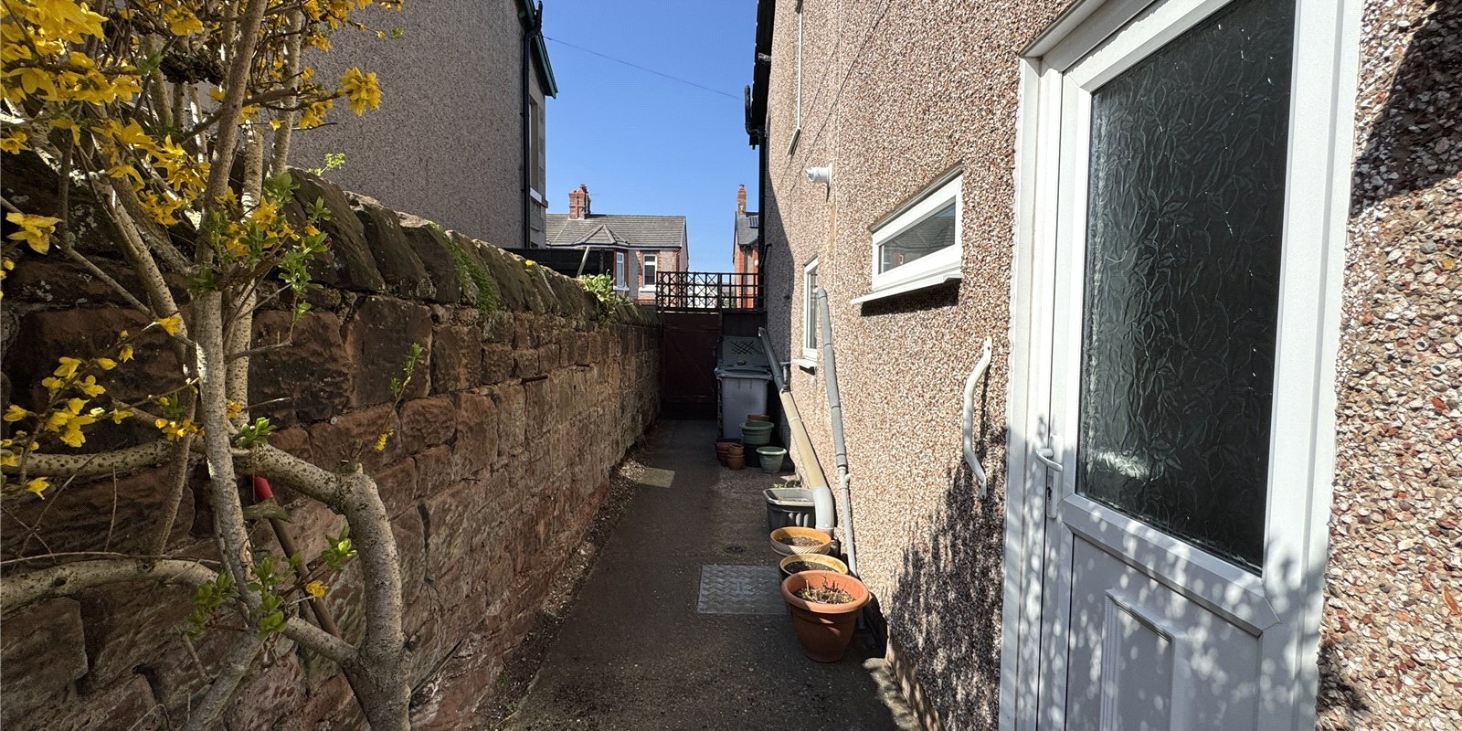Externally, the property benefits from a private driveway providing off-road parking and a sunny rear garden, which is an ideal space for relaxation and outdoor entertaining. The garden currently features a combination of patio and lawned areas, offering both practicality and potential for landscaping, while the rear aspect provides pleasant views.
