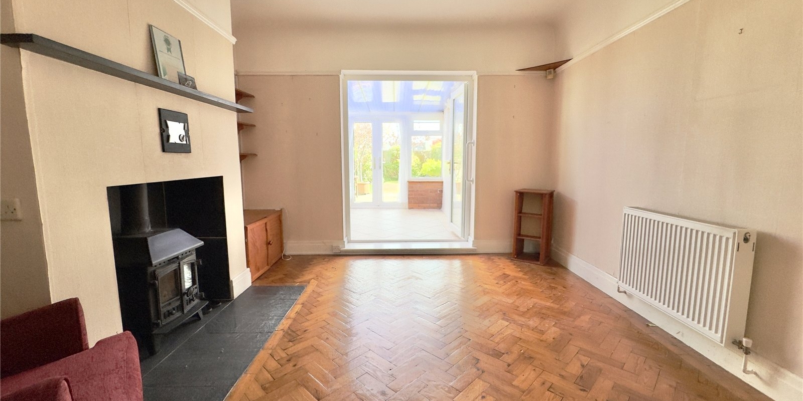 The accommodation is approached via a welcoming entrance hallway featuring original parquet flooring, which continues through into the lounge. The lounge flows seamlessly into the dining room, creating a bright and sociable living space, with a conservatory accessed from the dining area overlooking the rear garden. The galley-style kitchen has been extended towards the rear, providing additional space and functionality, while still offering scope for further modernisation to suit individual preferences.