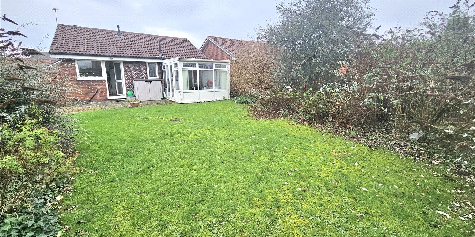 Externally, the property benefits from parking down the side of the bungalow, a lawned garden to the front, and a generous, sunny rear garden. The rear garden features an initial patio area, ideal for outdoor dining, leading to a well-maintained lawned area, perfect for relaxing or entertaining.