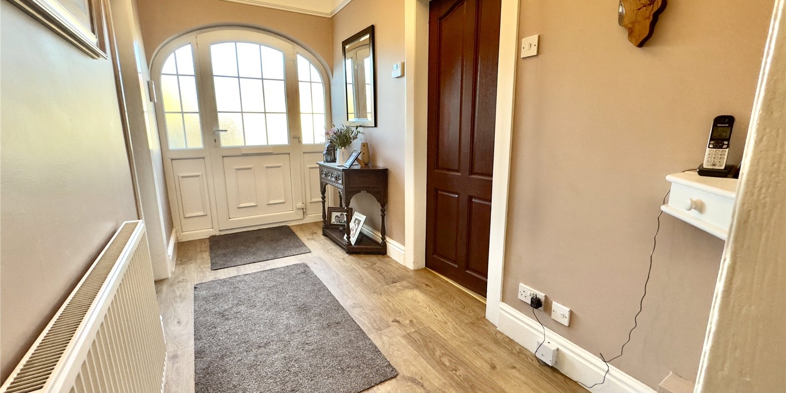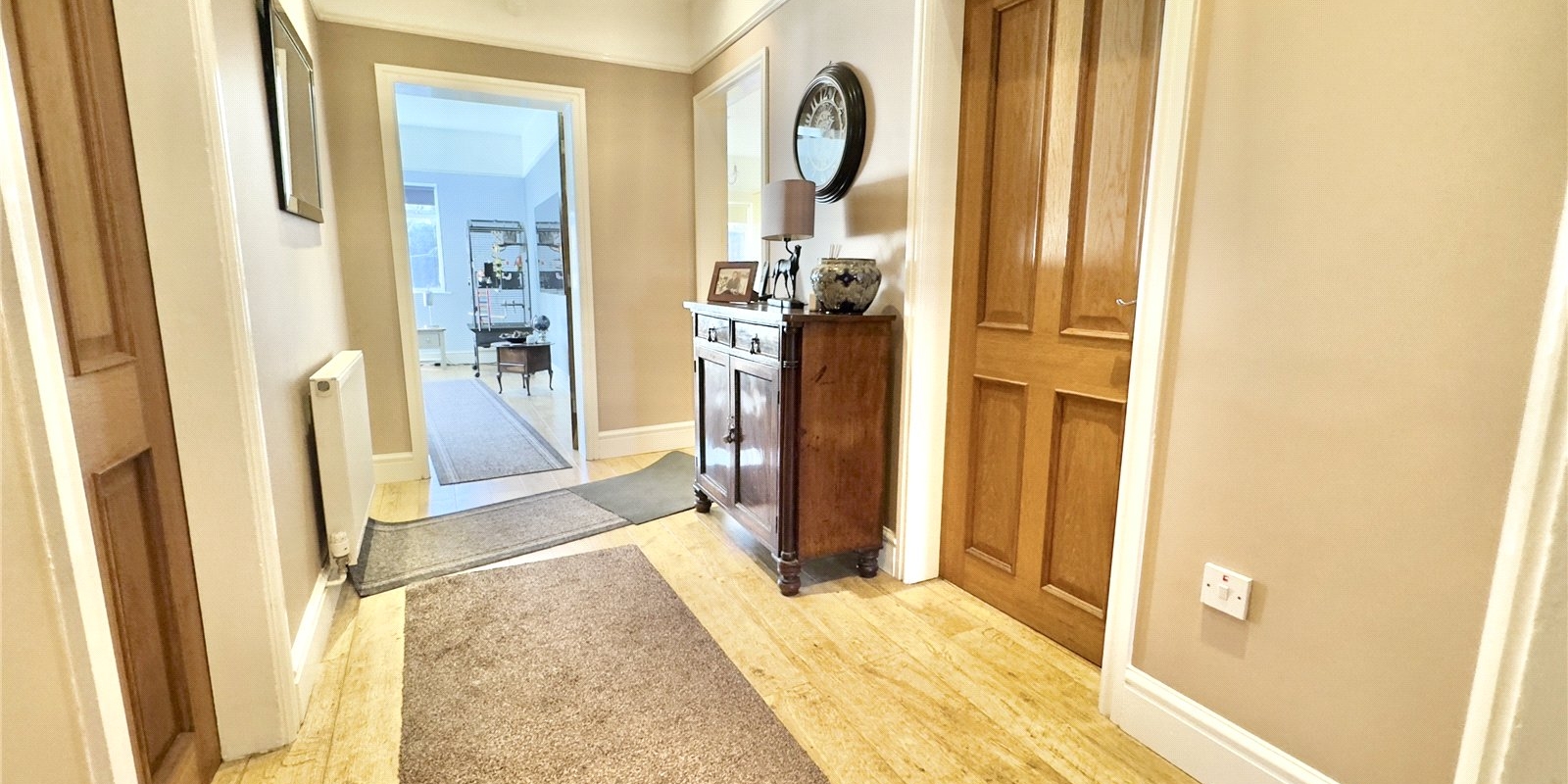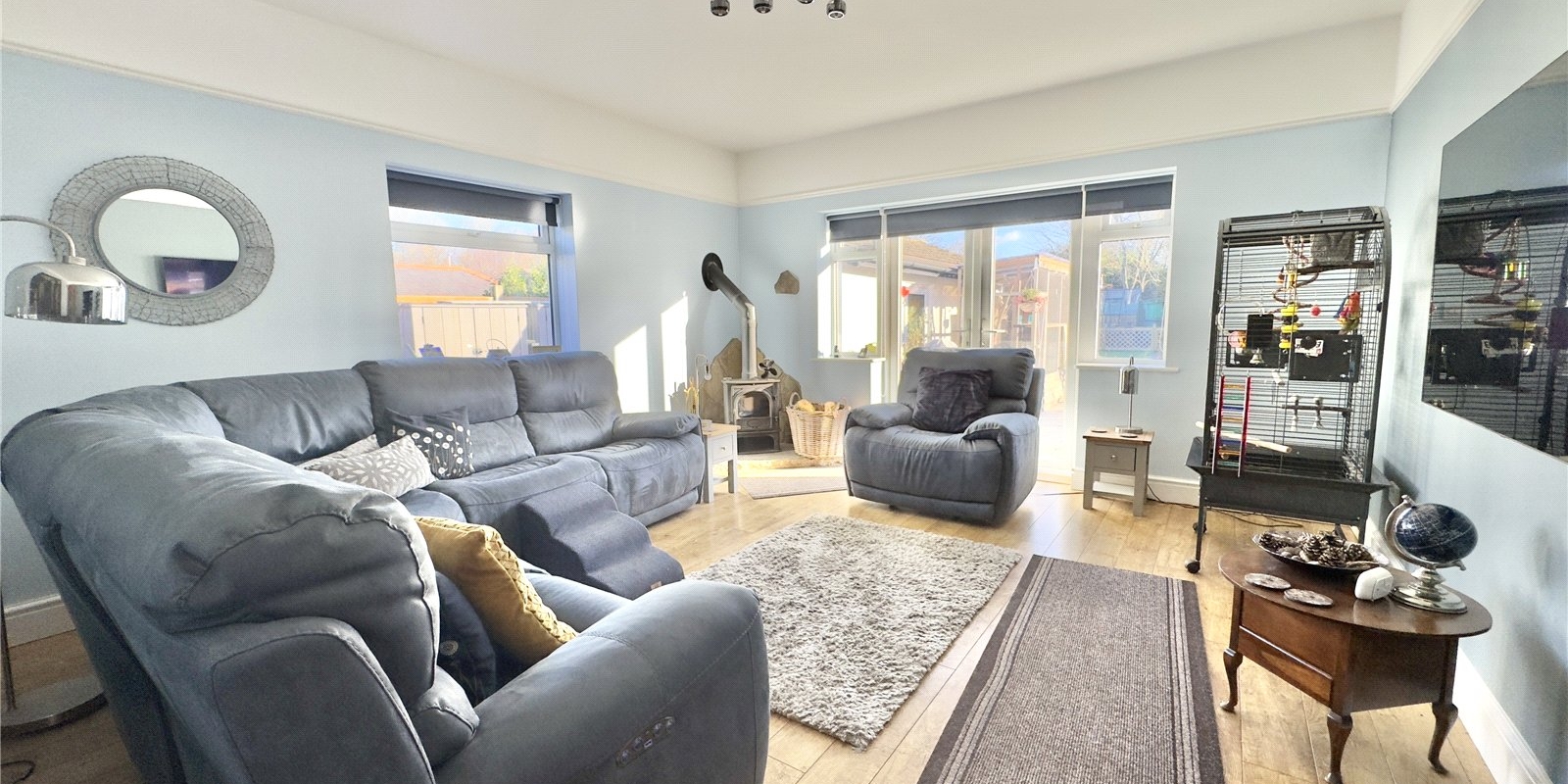 Set on a substantial plot, this characterful bungalow is approached via a long driveway providing off-road parking for numerous vehicles, leading to a detached garage. The generous frontage creates an immediate sense of privacy and space, while the vast rear garden is an outstanding feature of the home. The current owners have previously utilised the garden for ponies, hens and exotic birds, while the main garden area includes a patio, lawn, pond and pigeon coop – offering huge versatility for families, hobbyists or anyone seeking outdoor space on a rare scale.