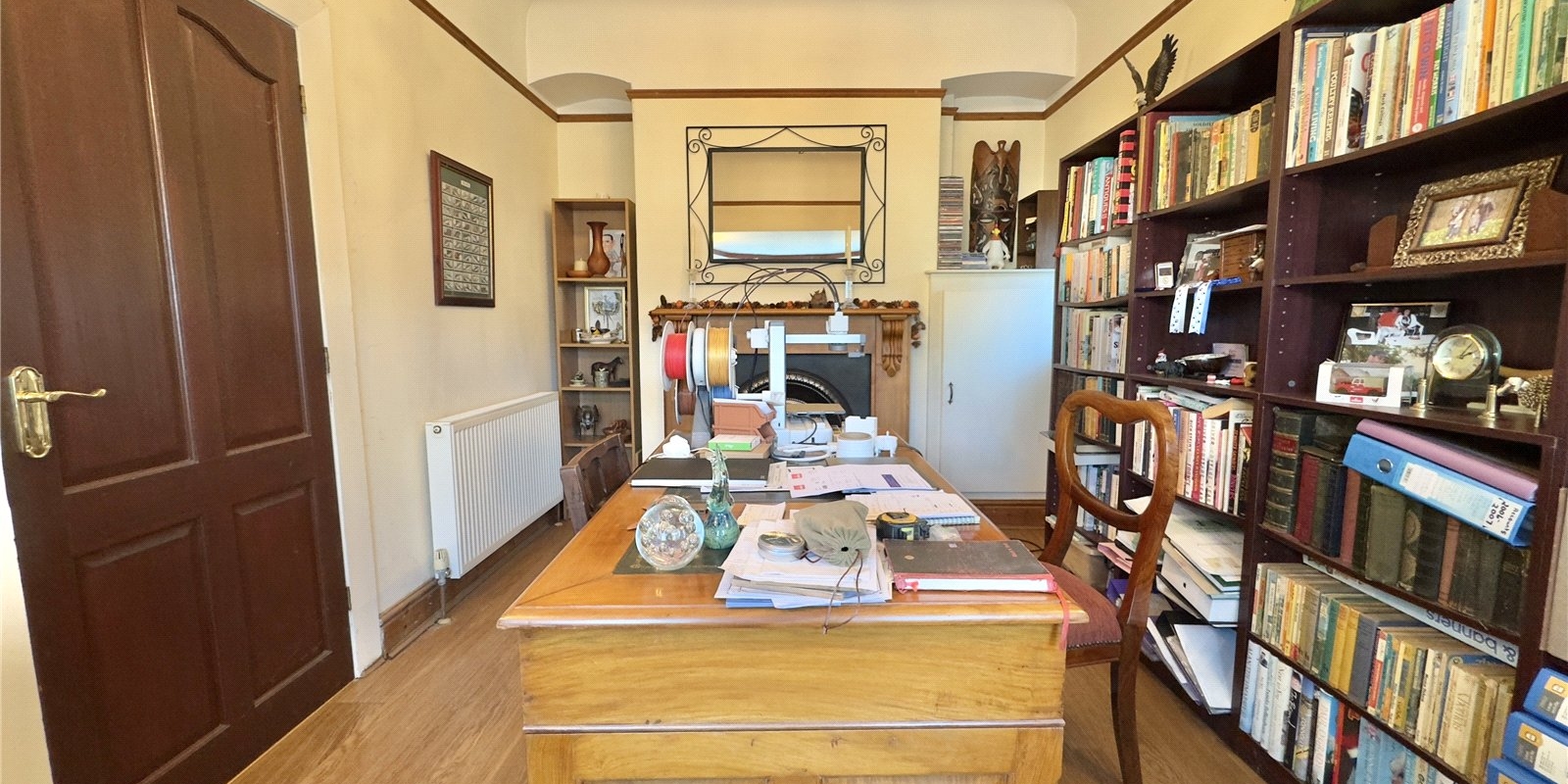 Internally, the property provides a surprisingly spacious and flexible layout. The entrance hallway leads to a bay-fronted reception room at the front which could also serve as a fourth bedroom if required. A well-proportioned kitchen/breakfast room flows into the dining room with feature fireplace and side window, while the main rear lounge enjoys garden views and a cosy wood-burning stove.